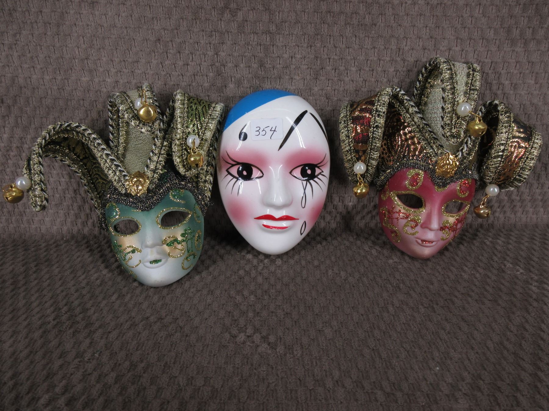 3 - Painted Face Masks, 1 Ceramic, 2 Plastic - Wall Décor - approximately 3 inches by 5 inches
