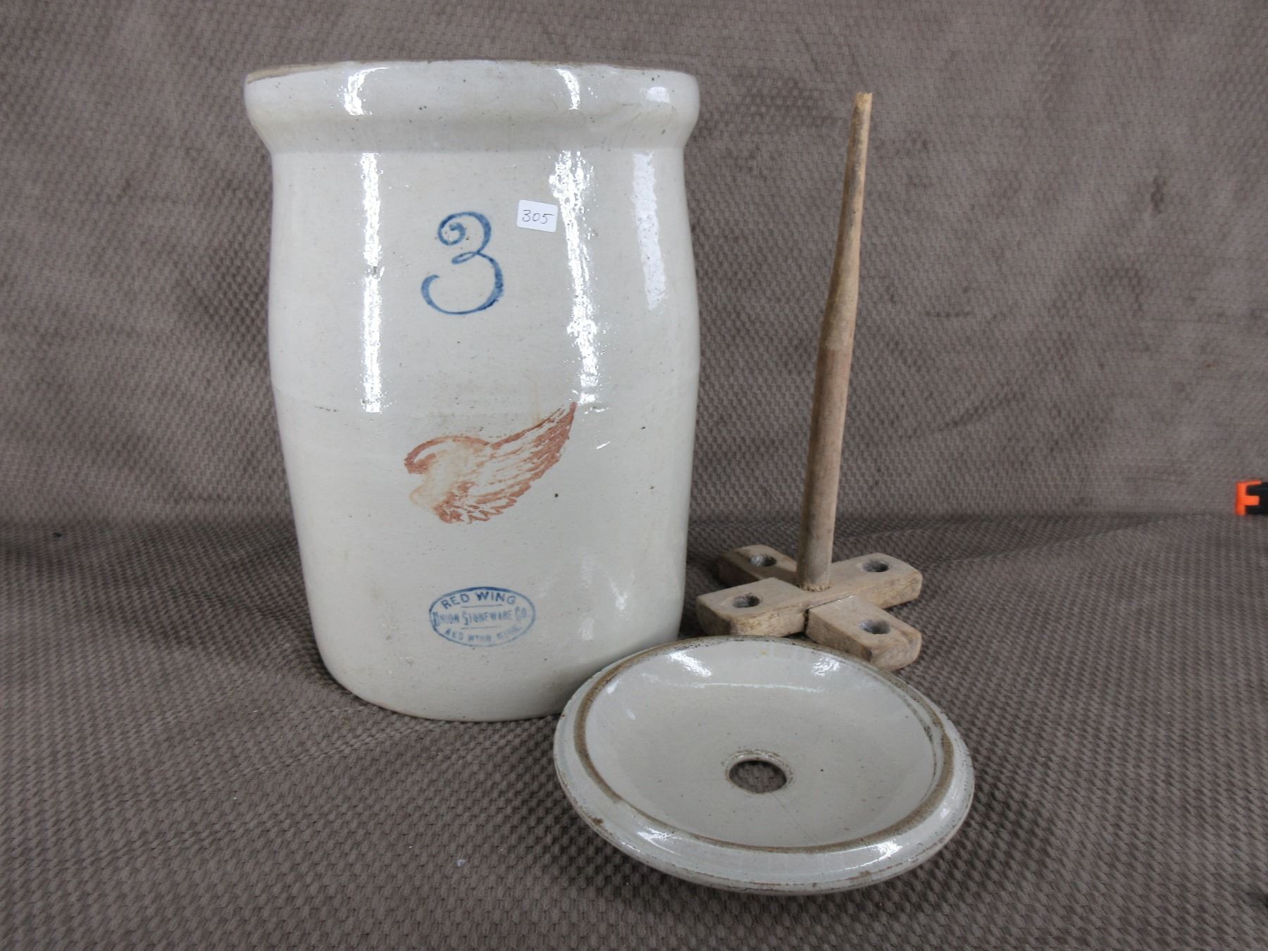 #3 Redwing Crock & Lid - no crack in jug, crack in lid