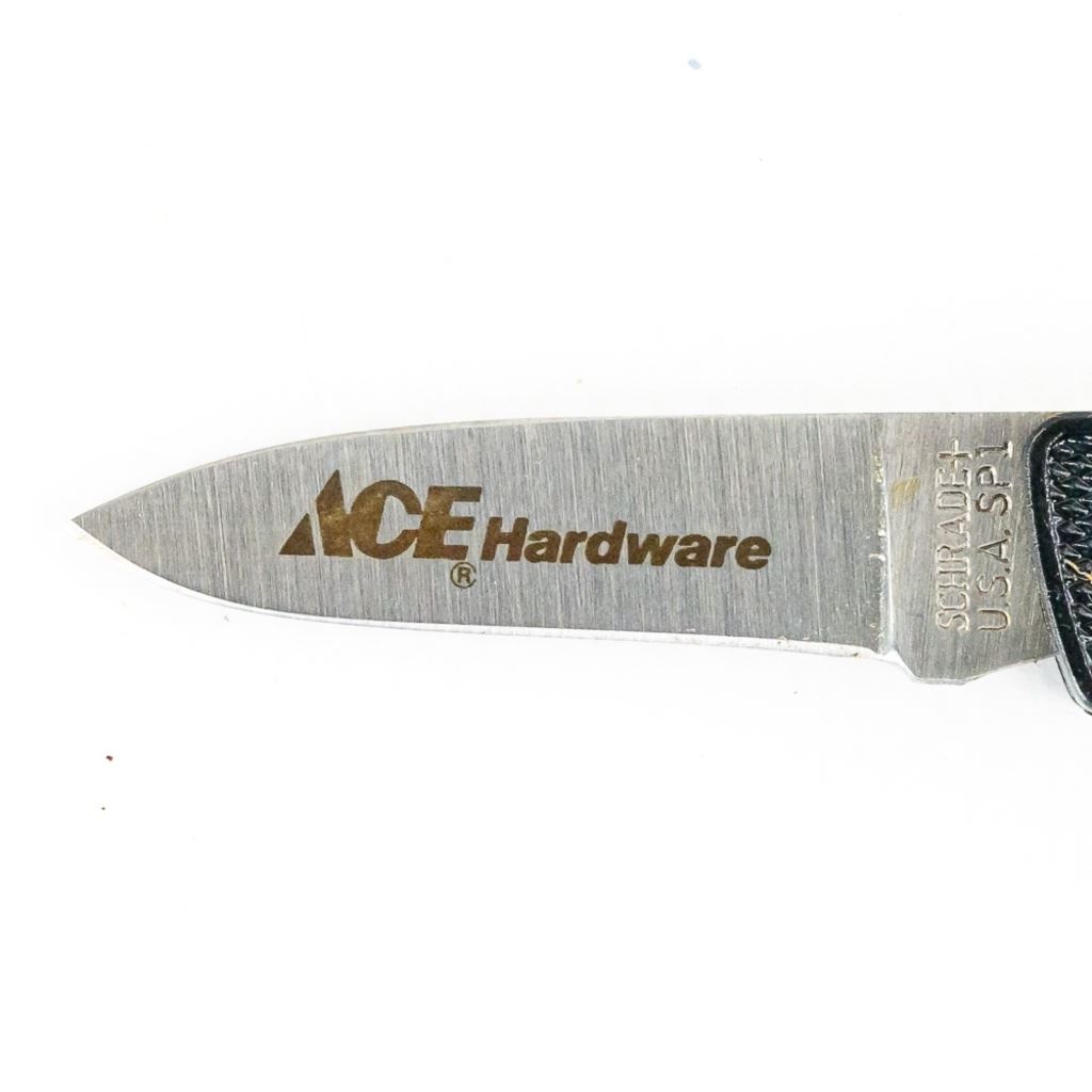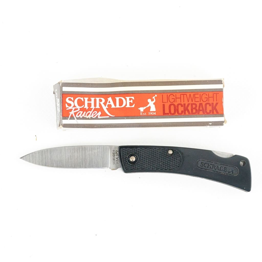 3 Schrade USA pocket knives. Models are SP1,SP2, and SP3. SP 1 and 2 are new in factory boxes. SP3 is Harley Davidson Promotional Item and is dirty but appears unused. See photos.