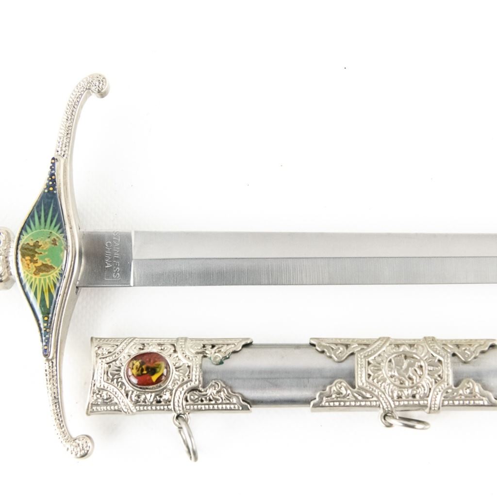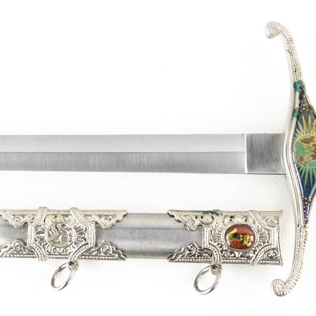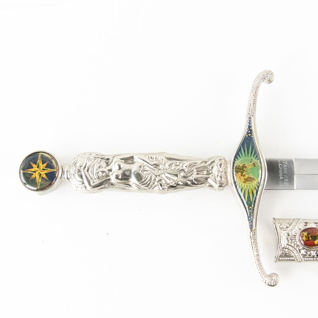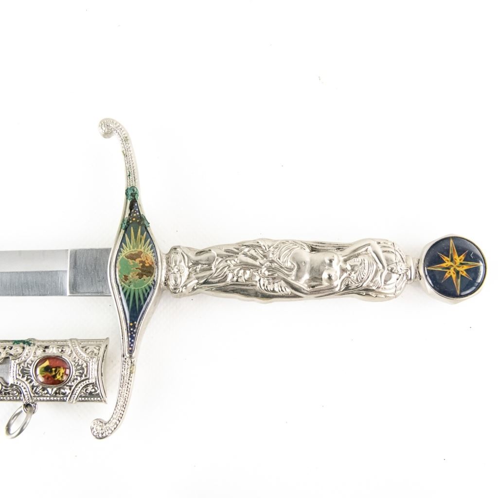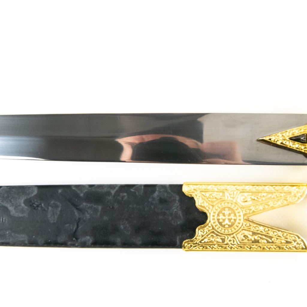 3 Imported short sword or dagger style knives. All Three appear to be brand new condition, 3 very different decoration and blade styles. Lengths range from 20-21" overall. All come with correct scabbards. See Photos