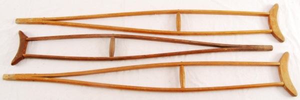 Pair of U.S. military used crutches WWII era. Other single crutch is home-made and 19th century.