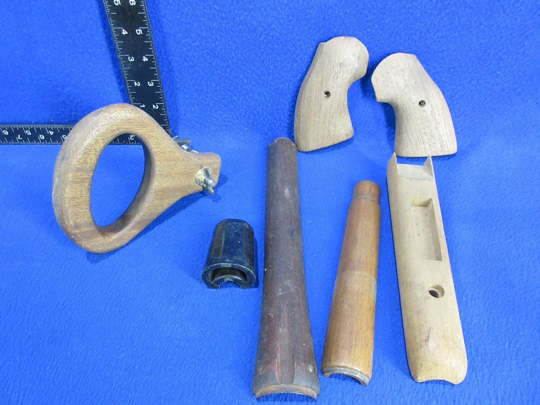 3 Unknown Wood Forearms, Wood Grips, Plastic End Cap and a Wood Handle