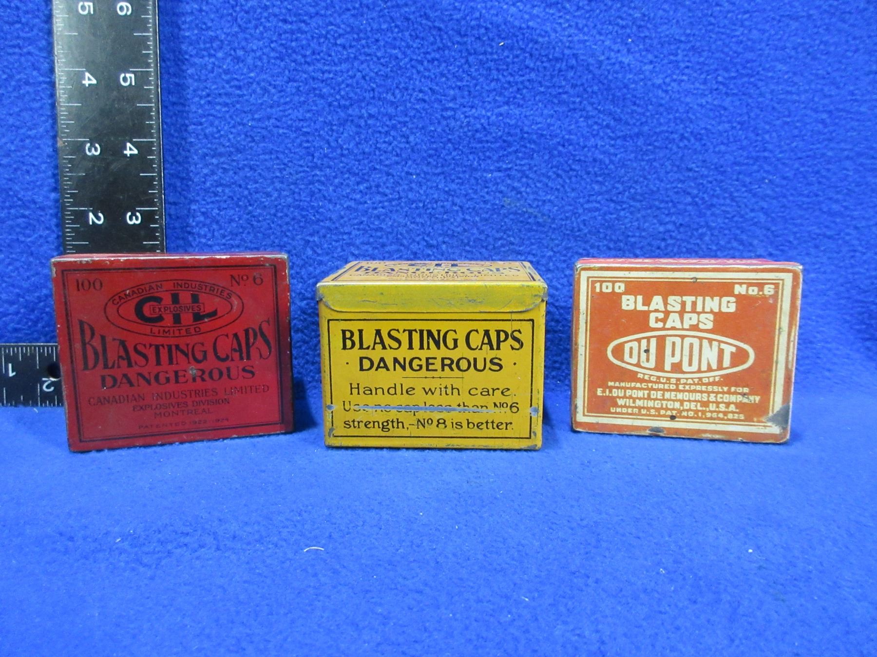 3 Vintage Blasting Caps Collector Tins - 2 CIL & 1 DuPont