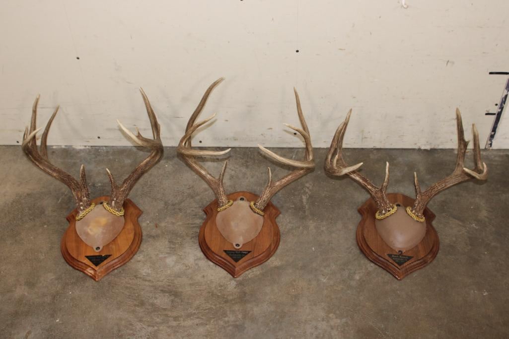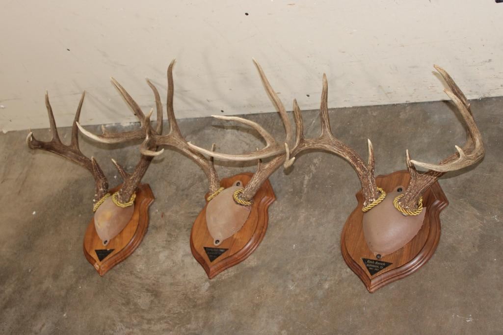 3 Respectable WHITETAIL DEER Antler Racks on Wooden Plaques. Each were Taken at the Reeh Ranch in Eldorado, TX. (ONE$) TAXIDERMY