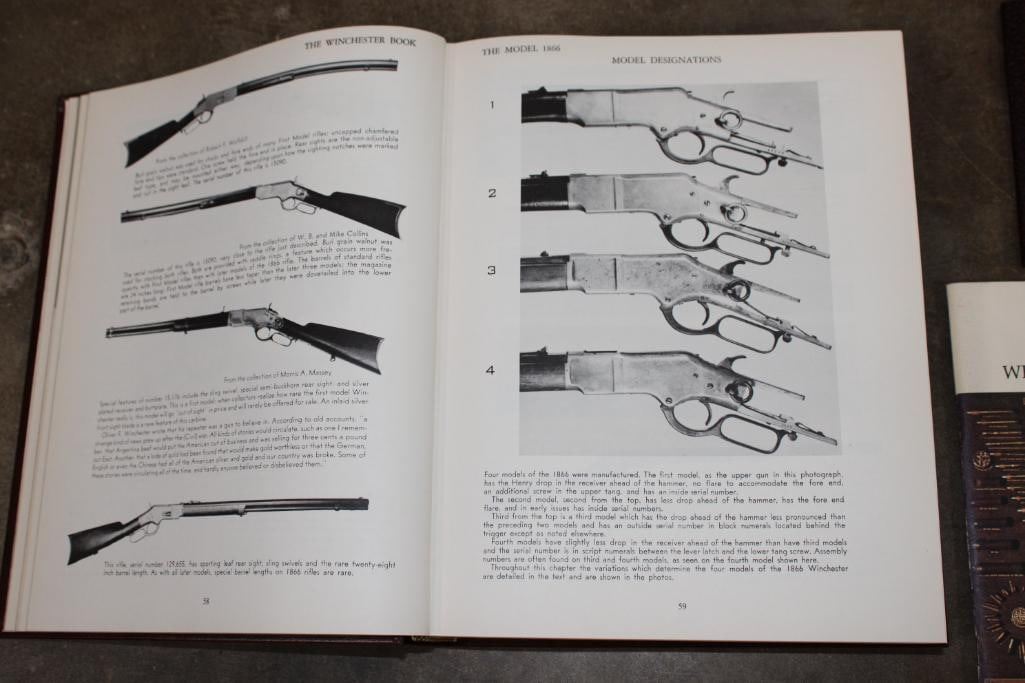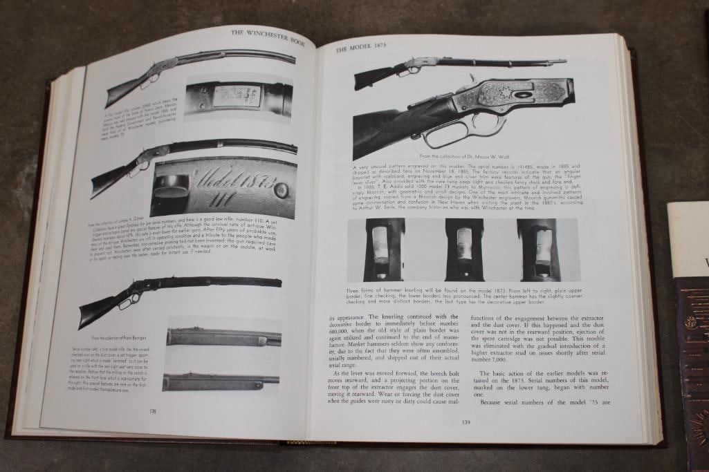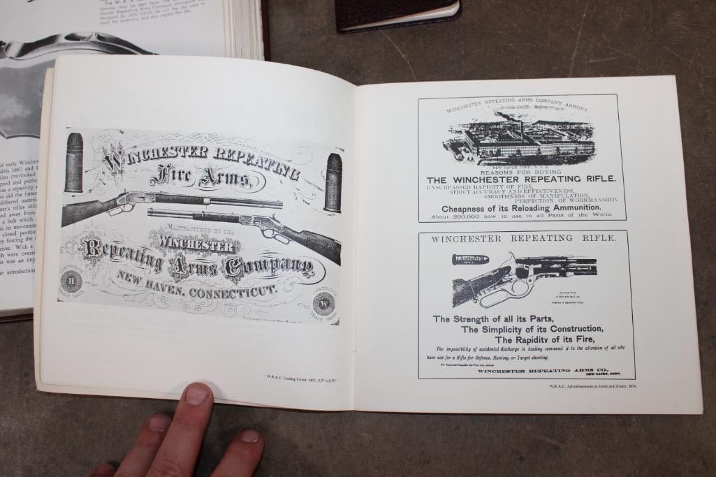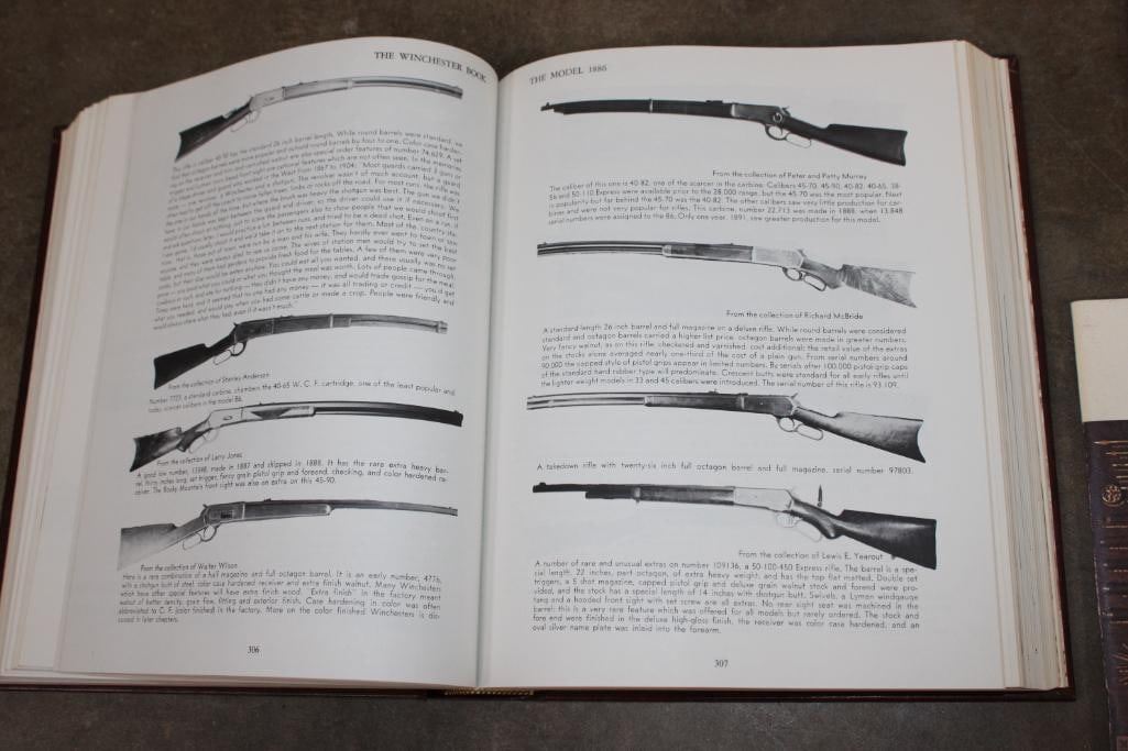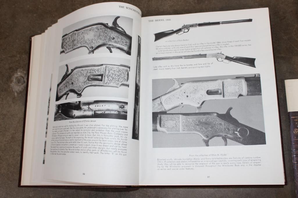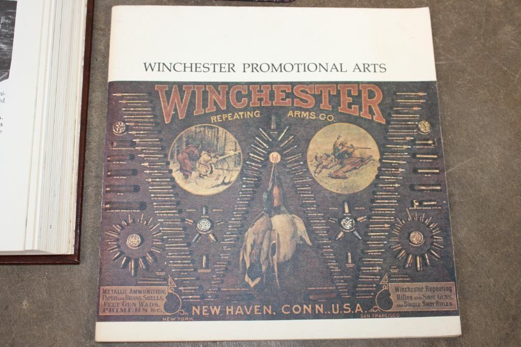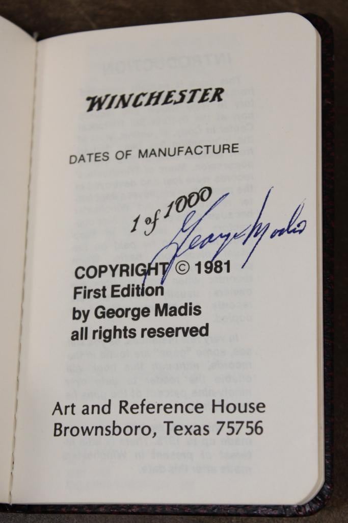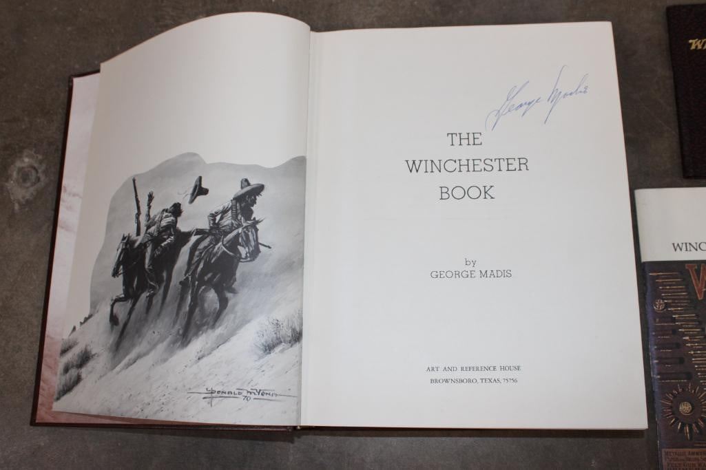3 Winchester Books. "The Winchester Book" (1/1000) and the "Winchester Dates of Manufacture" (1/1000) signed by the author George Madis. "Winchester Promotional Arts" by George Madis (unsigned). (ONE$) COLLECTIBLE HUNTING AND GUN BOOKS
