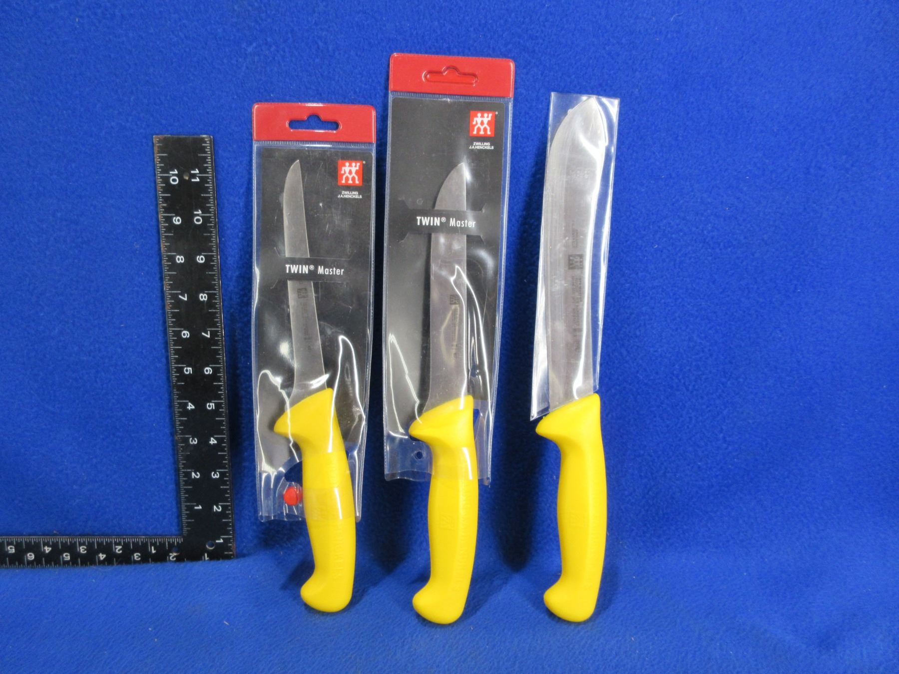 3 Zwilling J.A. Henckells Knives - 6" Boning Knfe, 6" Filet Knife, 8" Butcher Knife