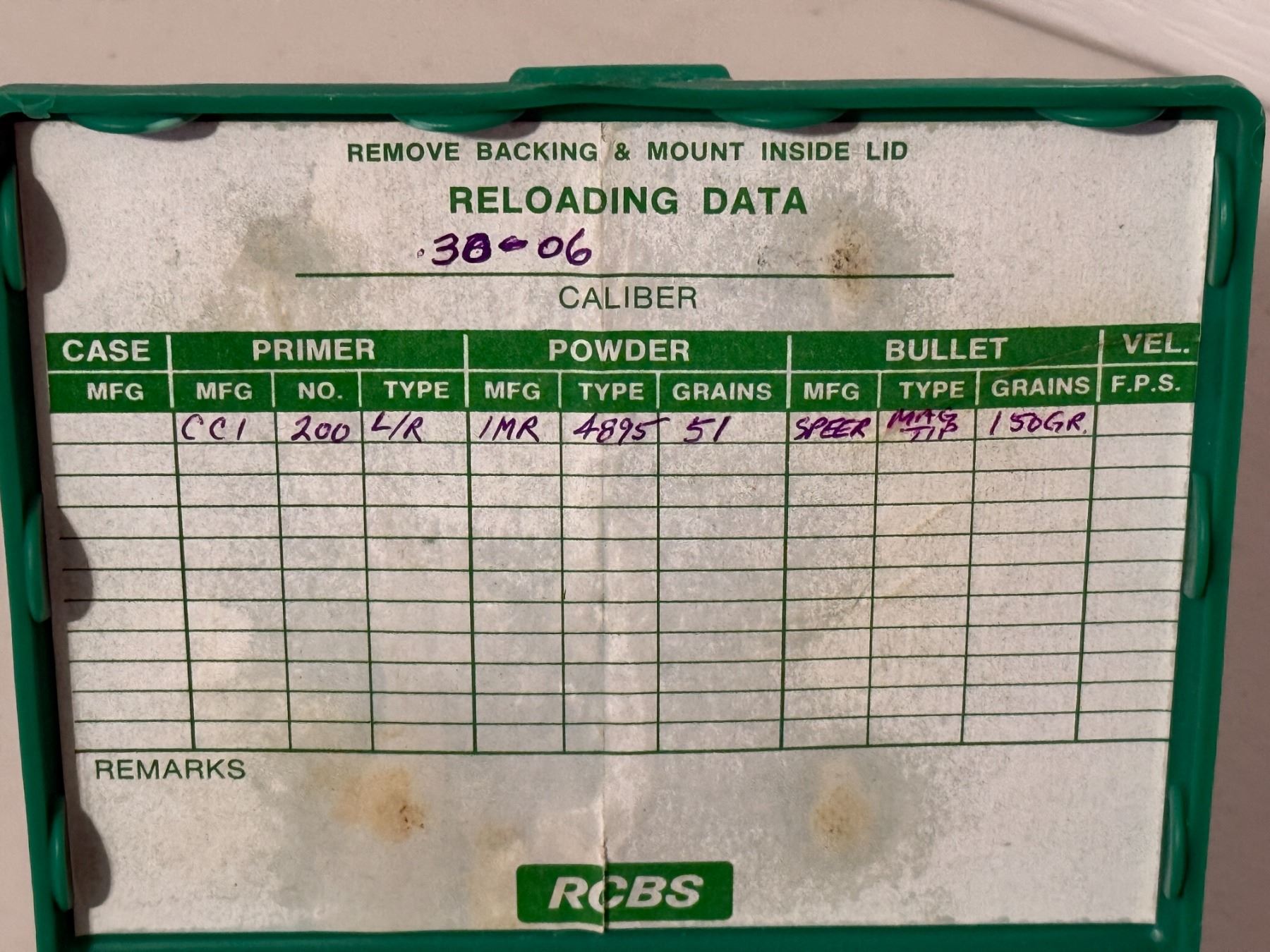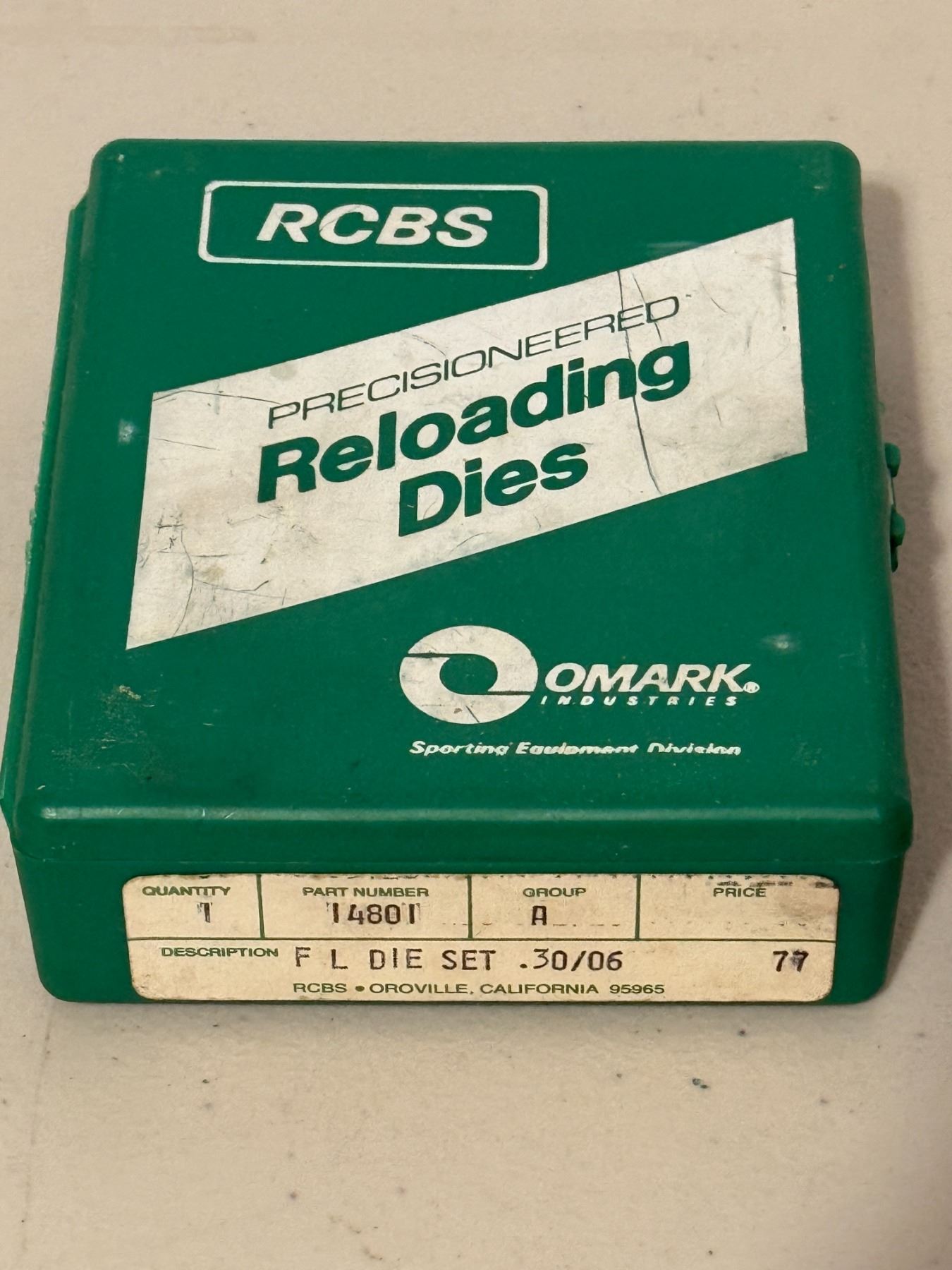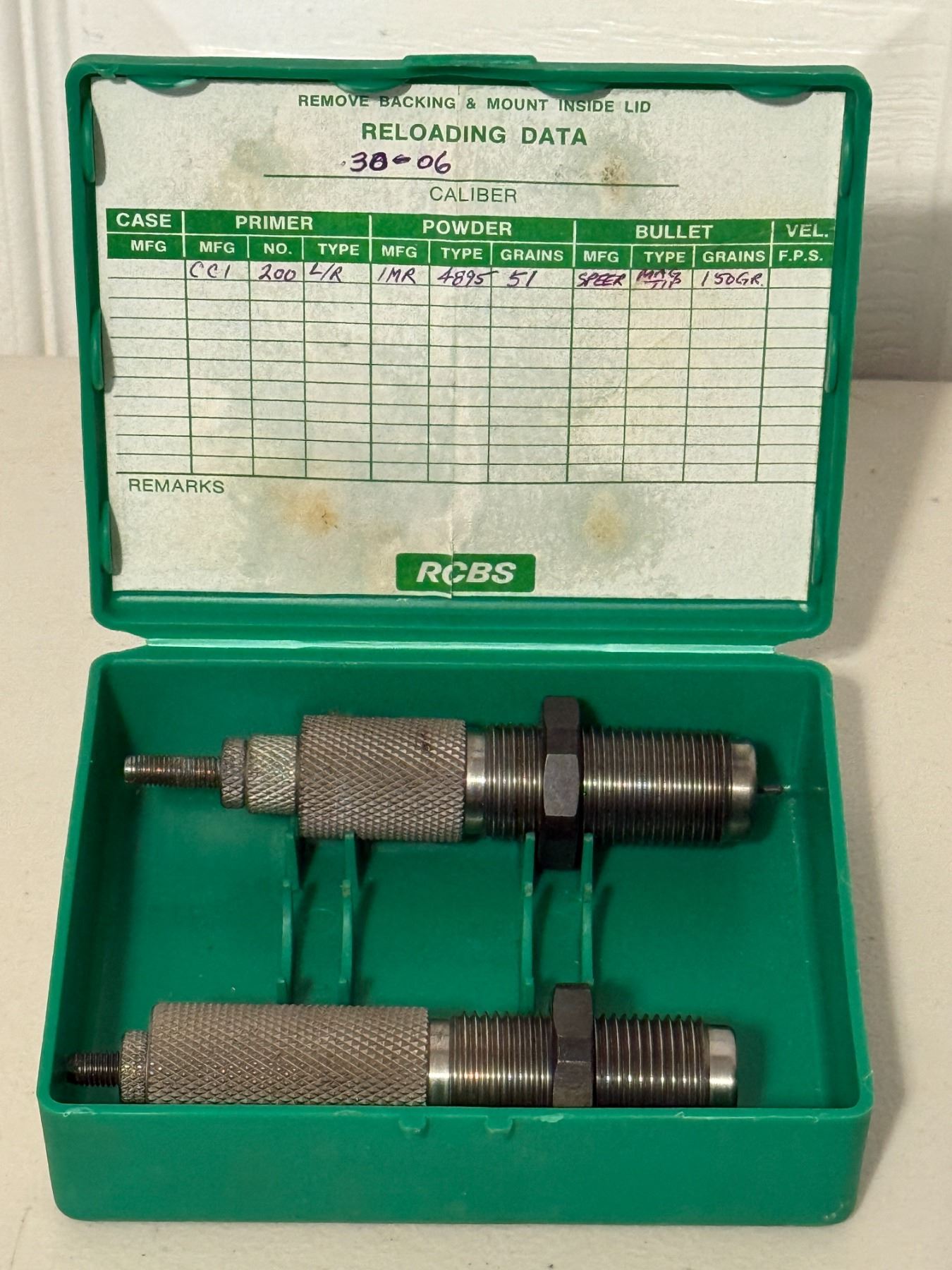 RCBS Precisionered full-length reloading die set for .30-06 Springfield. Includes original RCBS case with reloading data card