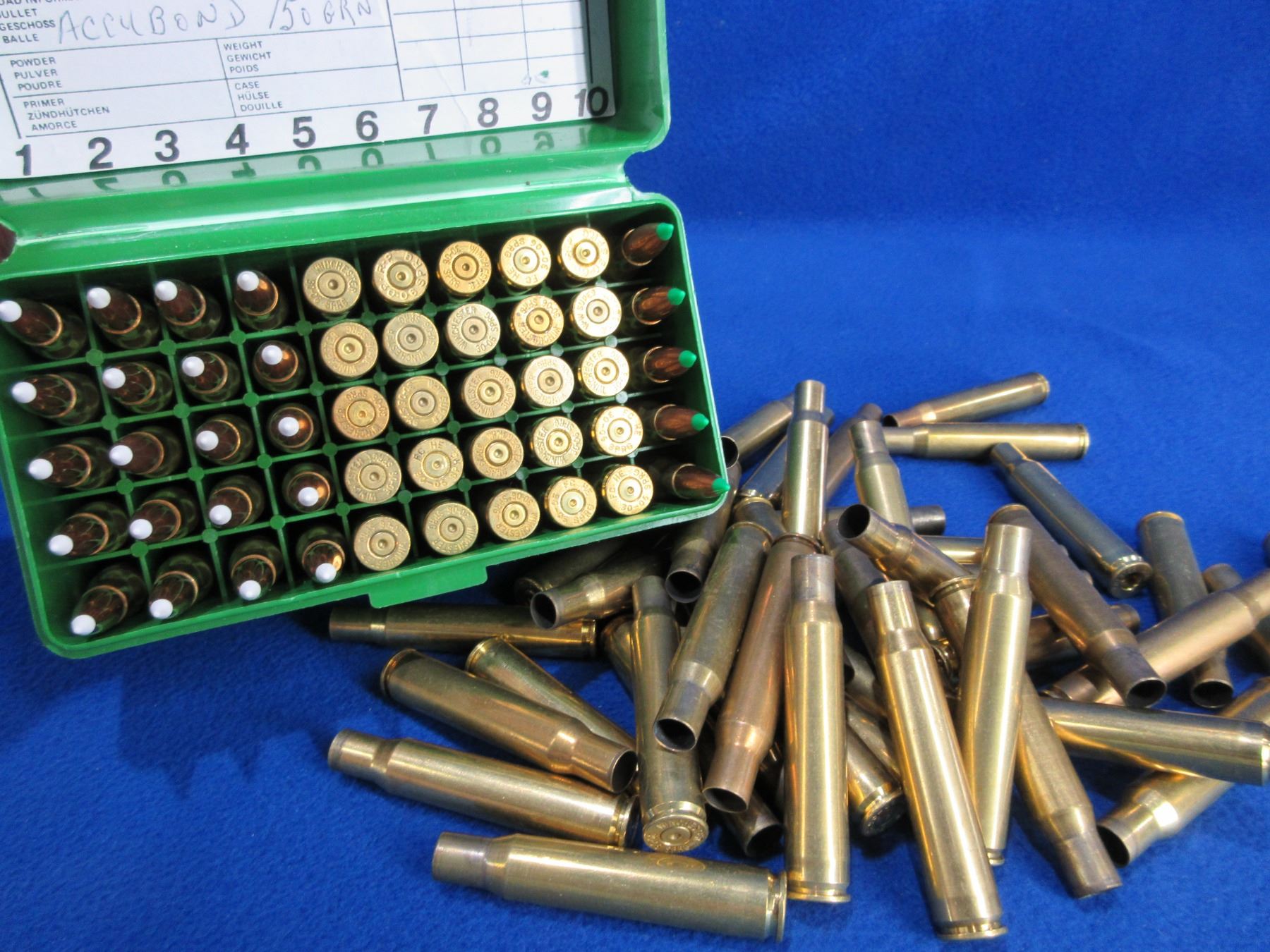 30-06 Sprg Reloads and Unprimed Brass - Box of 25 Reloads + 25 Brass, Bag of 46 Brass - Sold as Components - PICK UP ONLY