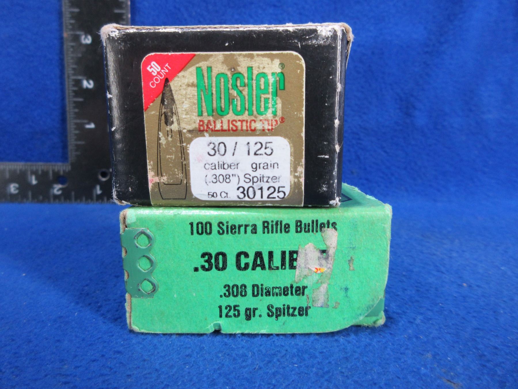 30 Cal. .308" 125gr Spitzer Nosler and Sierra Bullets - Box of 50 (Nosler), Box of 84 (Sierra)