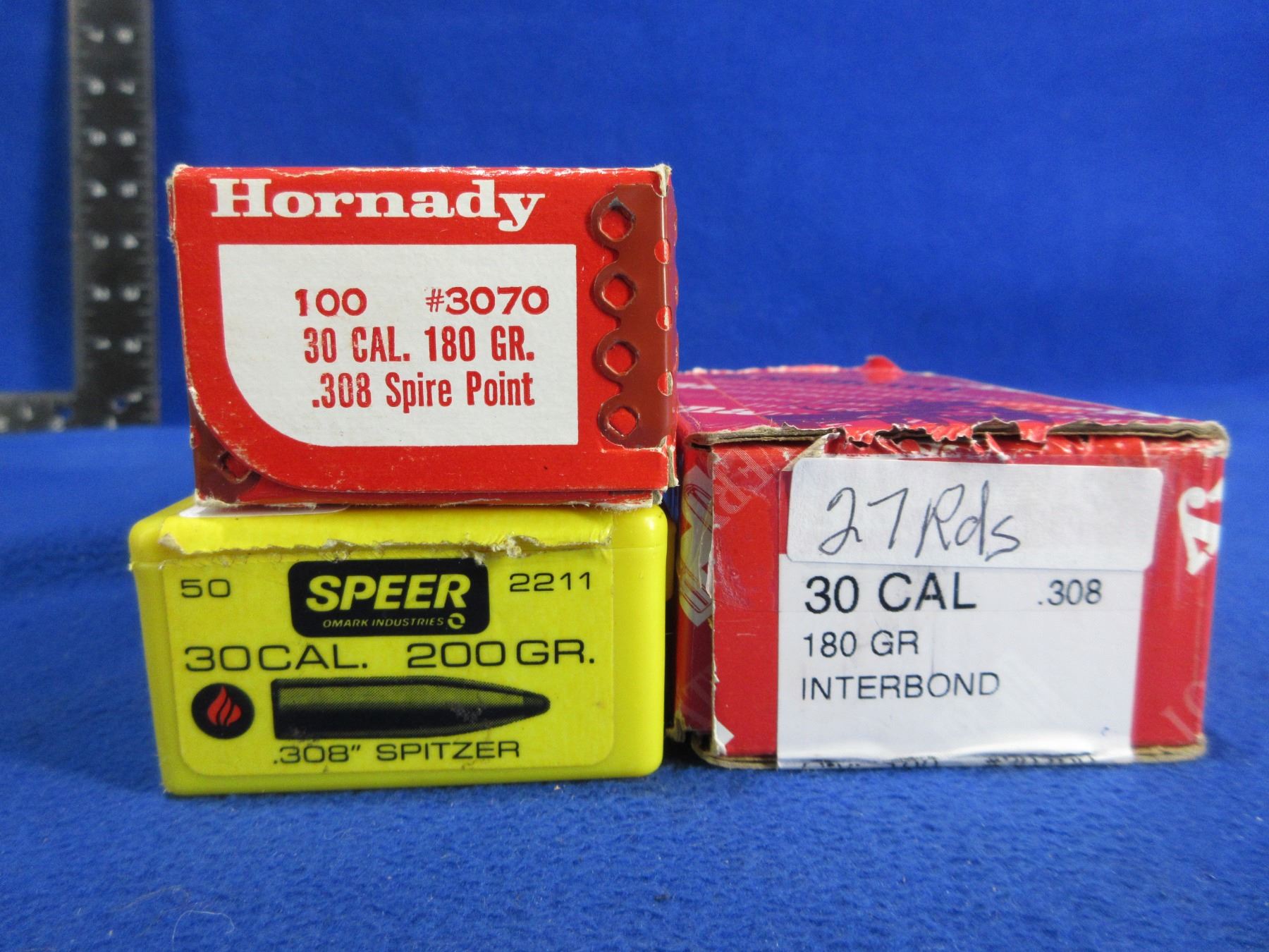 30 Cal. .308" Hornady and Speer Bullets - Box of 27 (Hornady 180gr Interbond), Box of 20 (Hornady 180gr Spire Point), Box of 19 (Speer 200gr Spitzer)