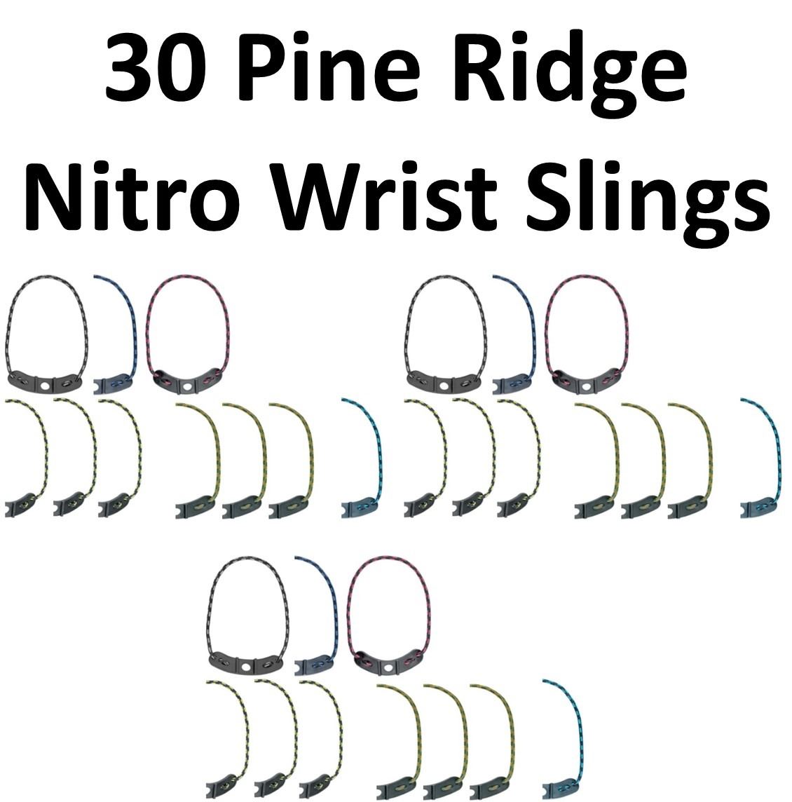 30 Pine Ridge Nitro Wrist Slings, 3-Black, 3-Red, 3-Orange, 3-Pink, 3-Yellow, 6-Vista Braided Sling - Red / Black, 9-LOC Outdoorz Stiffy Sling MaXX Black