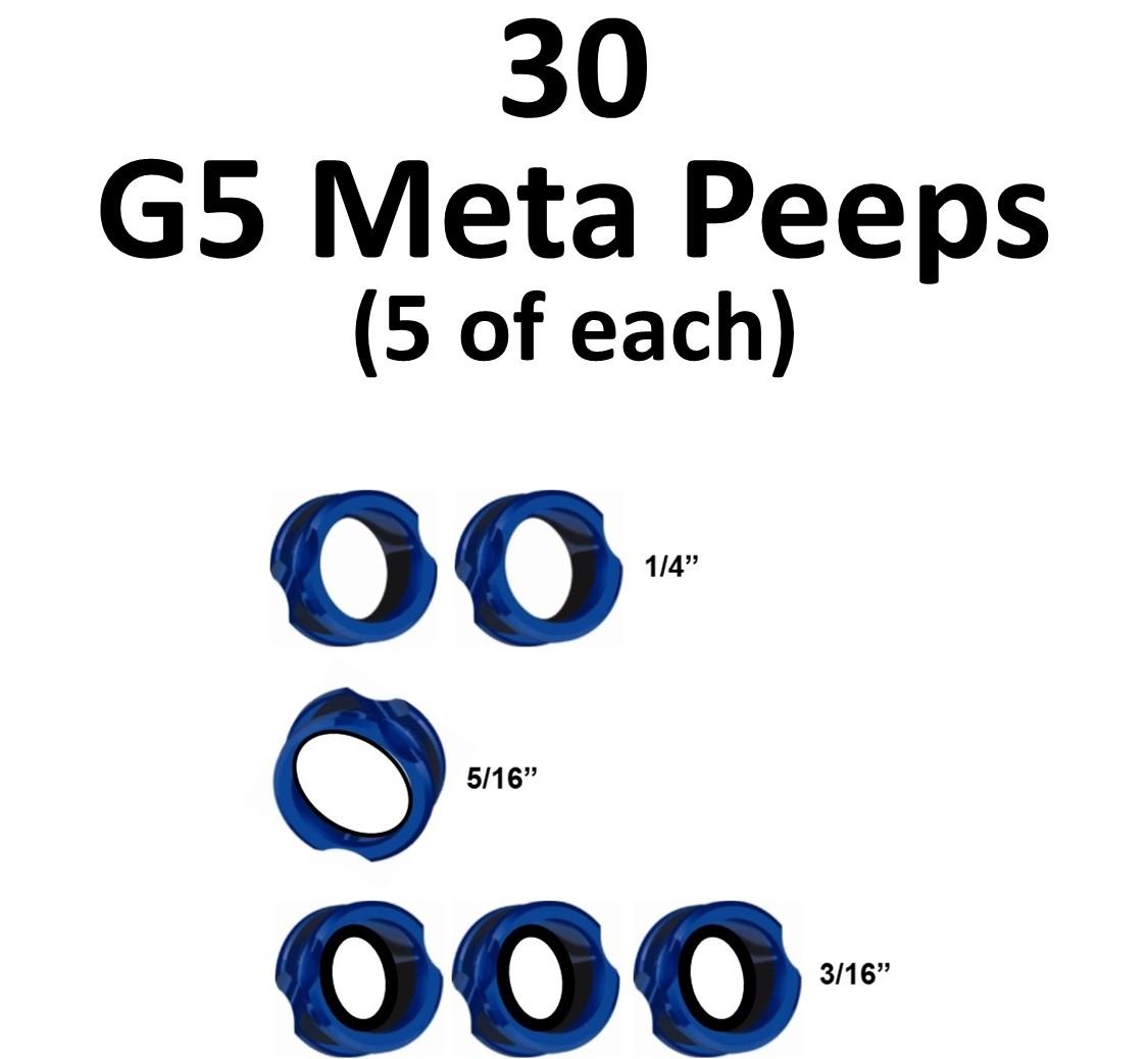 30 x G5 Meta Peeps, 10-Large Hunter 1/4, 5-Magnum Hunter Peep 5/16, 15-Hunter 3/16
