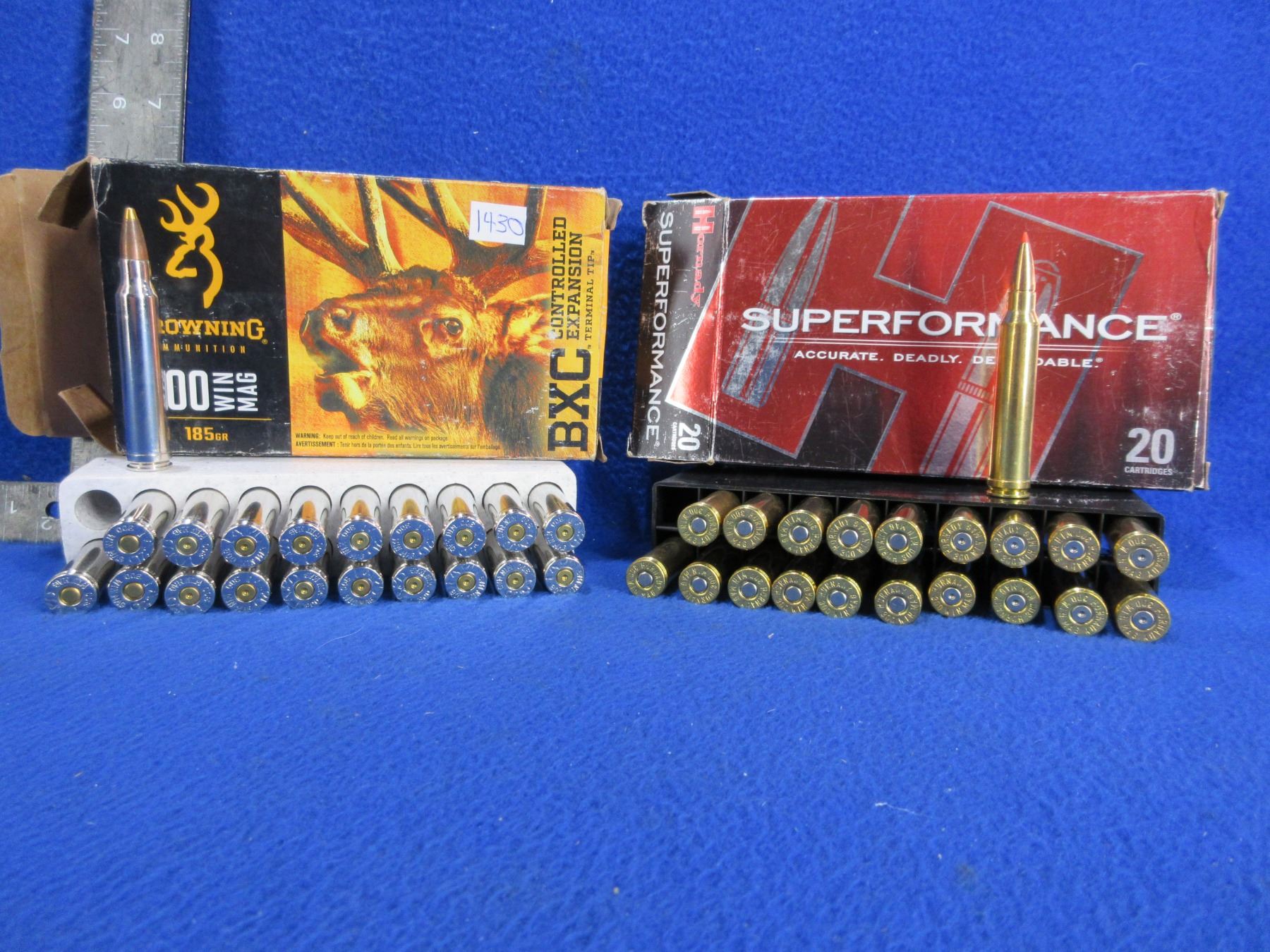 300 Win. Mag Browning and Hornady Cartridges - Box of 12 + 8 Brass (Hornady 165gr GMX), Box of 4 + 16 Brass (185gr BXC) - PICK UP ONLY