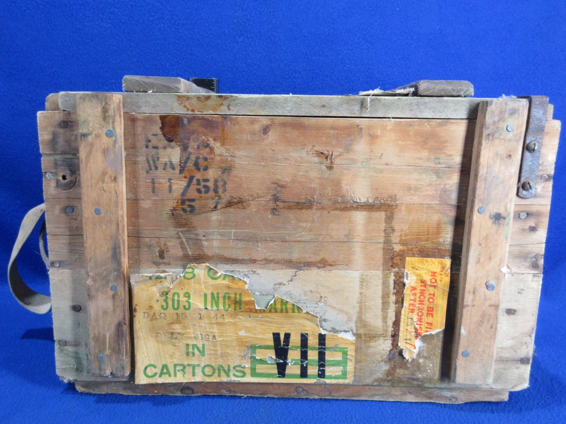 .303 Inch Mark VII Wood Ammo Box with Lid - Dated 1946 - 16 1/2" x 8 1/4" x 10 1/2" High