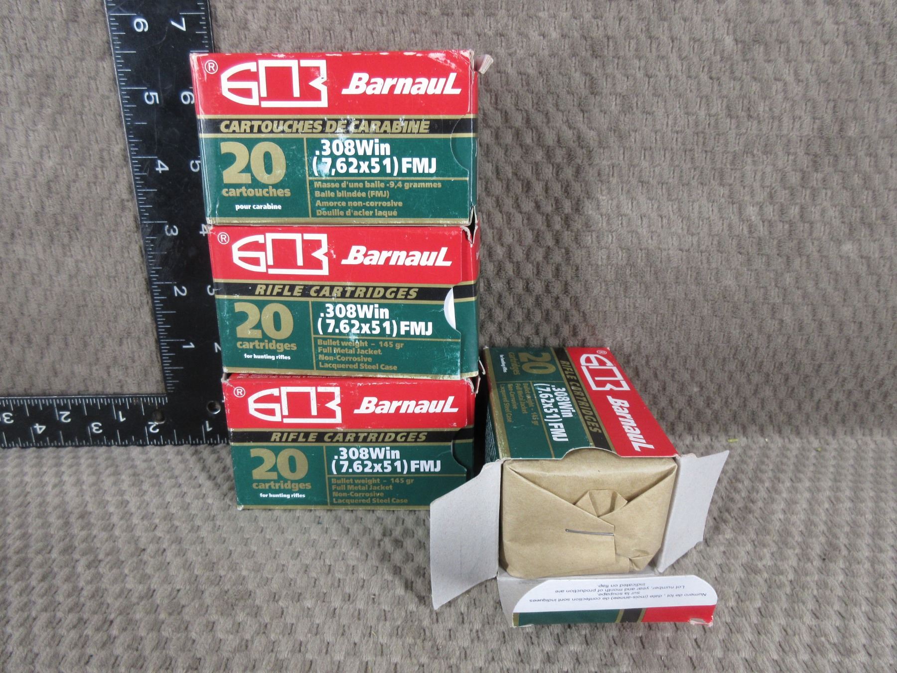 308 Win 145gr FMJ by Barnaul 4 Boxes of 20 Unopened