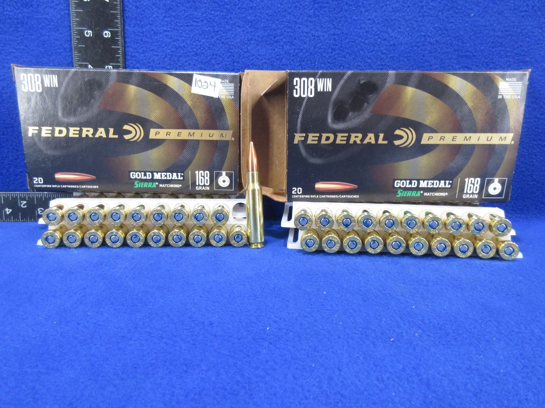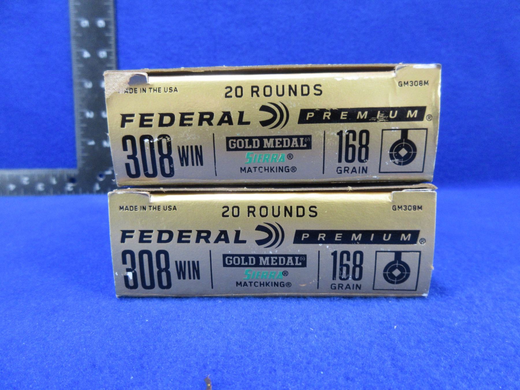 308 Win. 168gr Gold Medal Sierra Matchking Federal Cartridges - 2 Boxes of 20