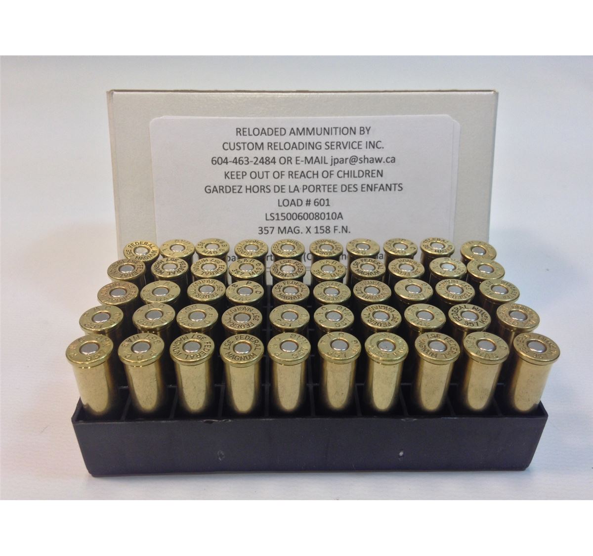 Custom Reloading Service Inc. 357 Magnum re-loaded ammo (50 rounds)