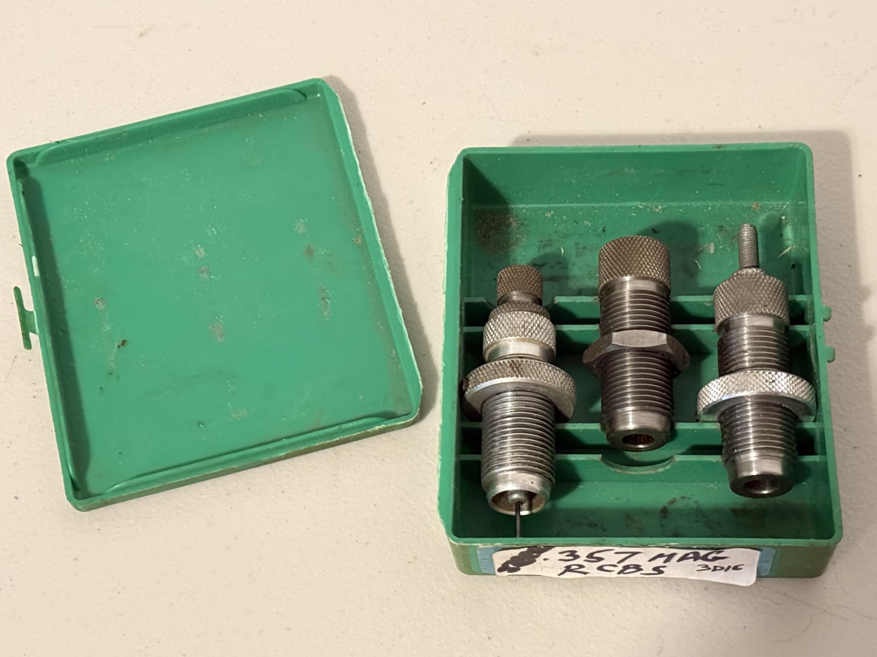 .357 Magnum RCBS 3 Die Set. Case lid closure is broken and does not latch.