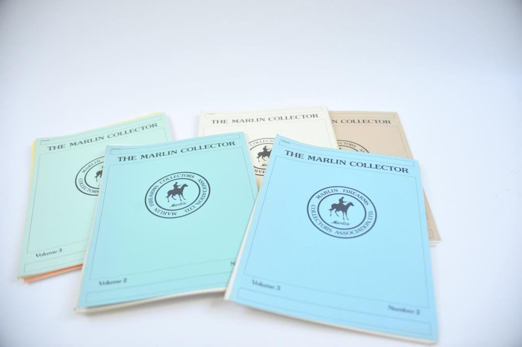 Marlin Firearms Co. annual catalogs 1964-2013. Also an unopened antique box of 50 Marlin double edge razor blade and package of Marlin Collector misc. paperwork. Est.: $100-$200