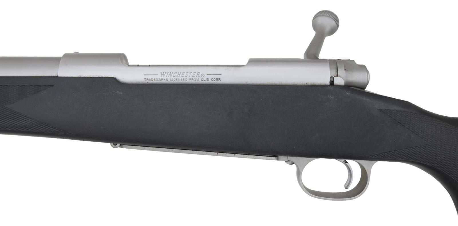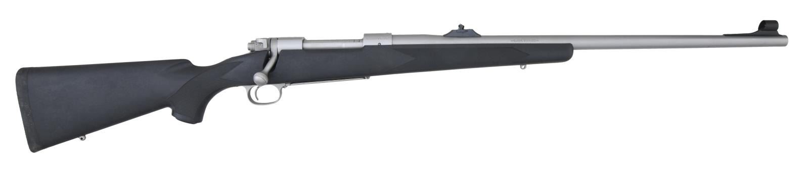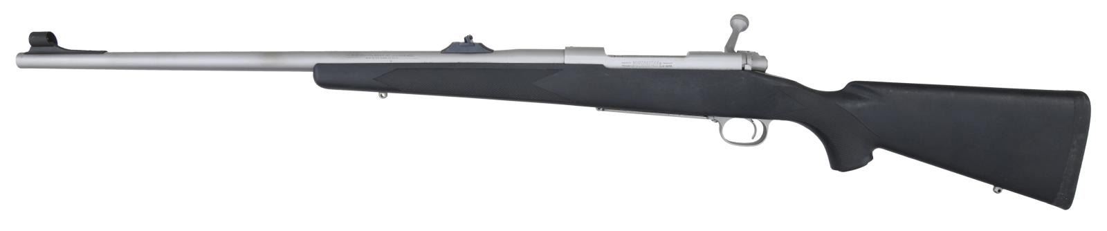 BOLT ACTION RIFLE. Cal. 375 H&H Mag. S# G3037696. Bbl. 24". Hooded bead front & Island V notch rear sights. Matching numbered bolt. Satin stainless finish. Black synthetic stock w/ sling studs & black recoil pad. CONDITION: near excellent metal finish showing minor marks & stain spots. Near excellent stock w/ residue on recoil pad. Near excellent bore. (23-1151/MD). MODERN. $800-1,200.