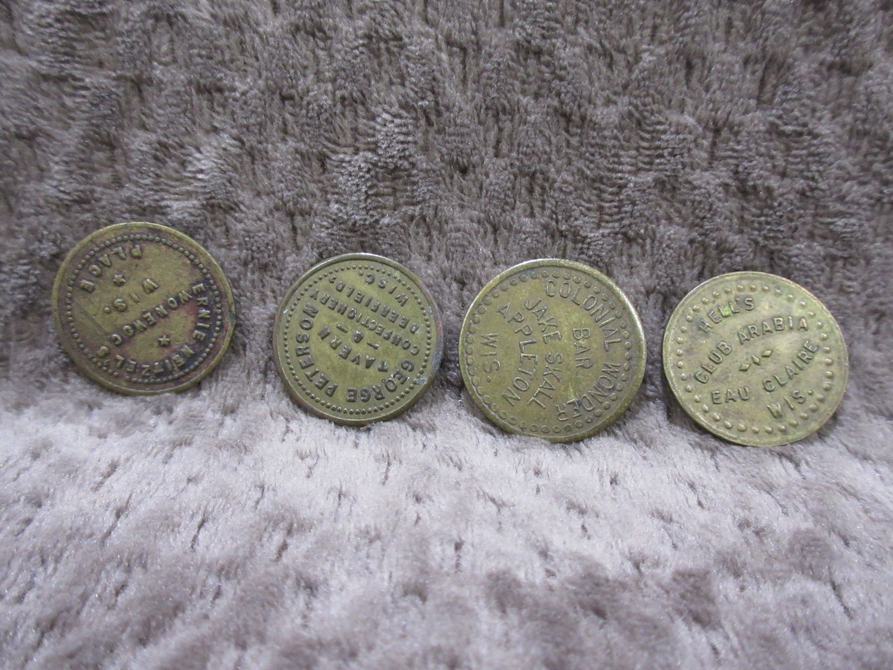 4 - 5 Cent Tokens - George Peterson Tavern, Hells Club Arabia, Ernie Neitzels Place, Colonial Wonder Bar