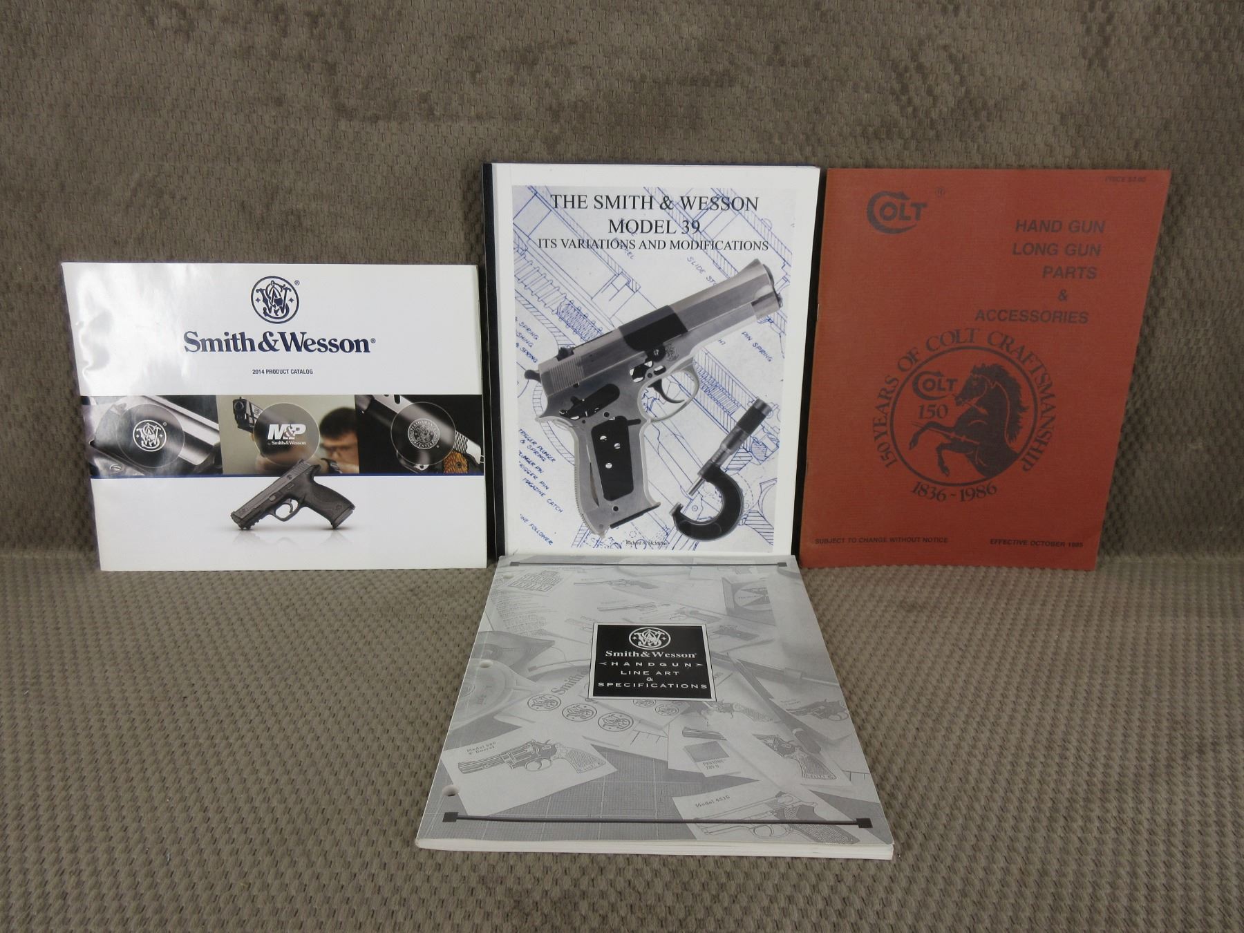 4 - Books/Catalogs S&W 2014 catalog, handgun line art, model 39 & Colt 1985 parts list