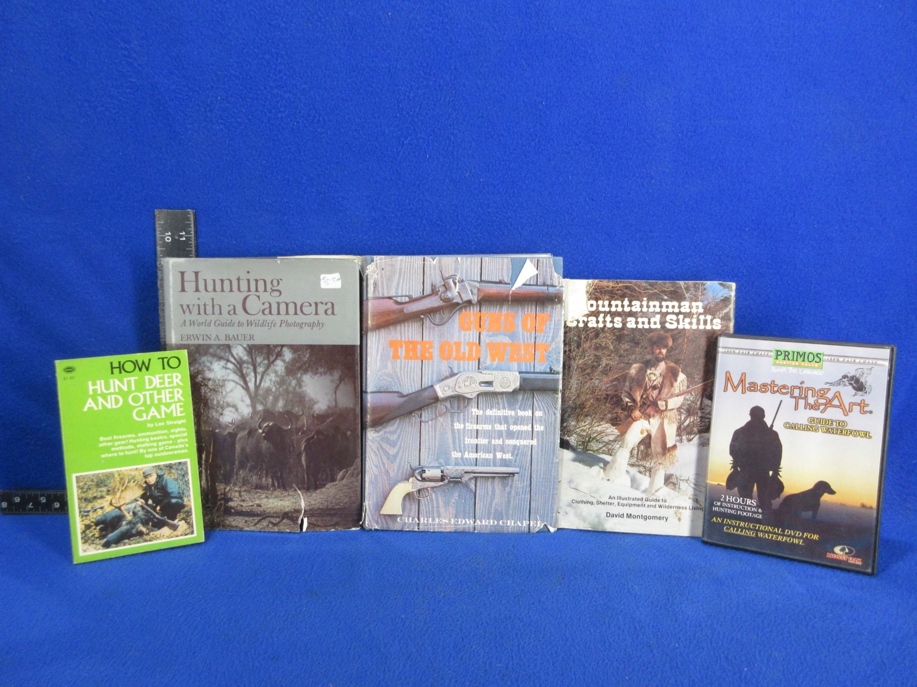 4 Books and a DVD - Hunting with a Camera, Guns of the Old West, Mountainman Crafts and Skills, How to Hunt Deer and Other Game, DVD (Primos Mastering the Art, Waterfowl Calling)