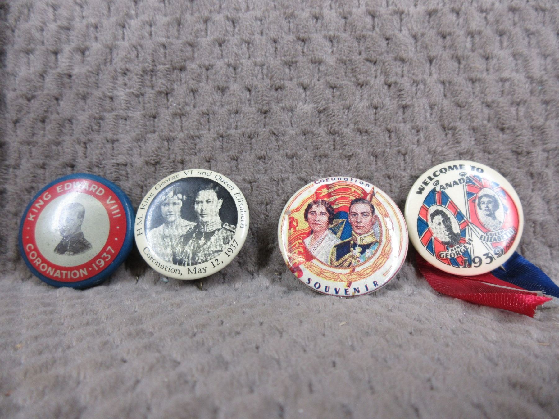 4 - British Buttons - King Edward VIII Coronation 1937, Coronation May 12, 1937 King George VI & Queen Elizabeth, Coronation Souvenir, Welcome to Canada King George & Queen Elizabeth 1939