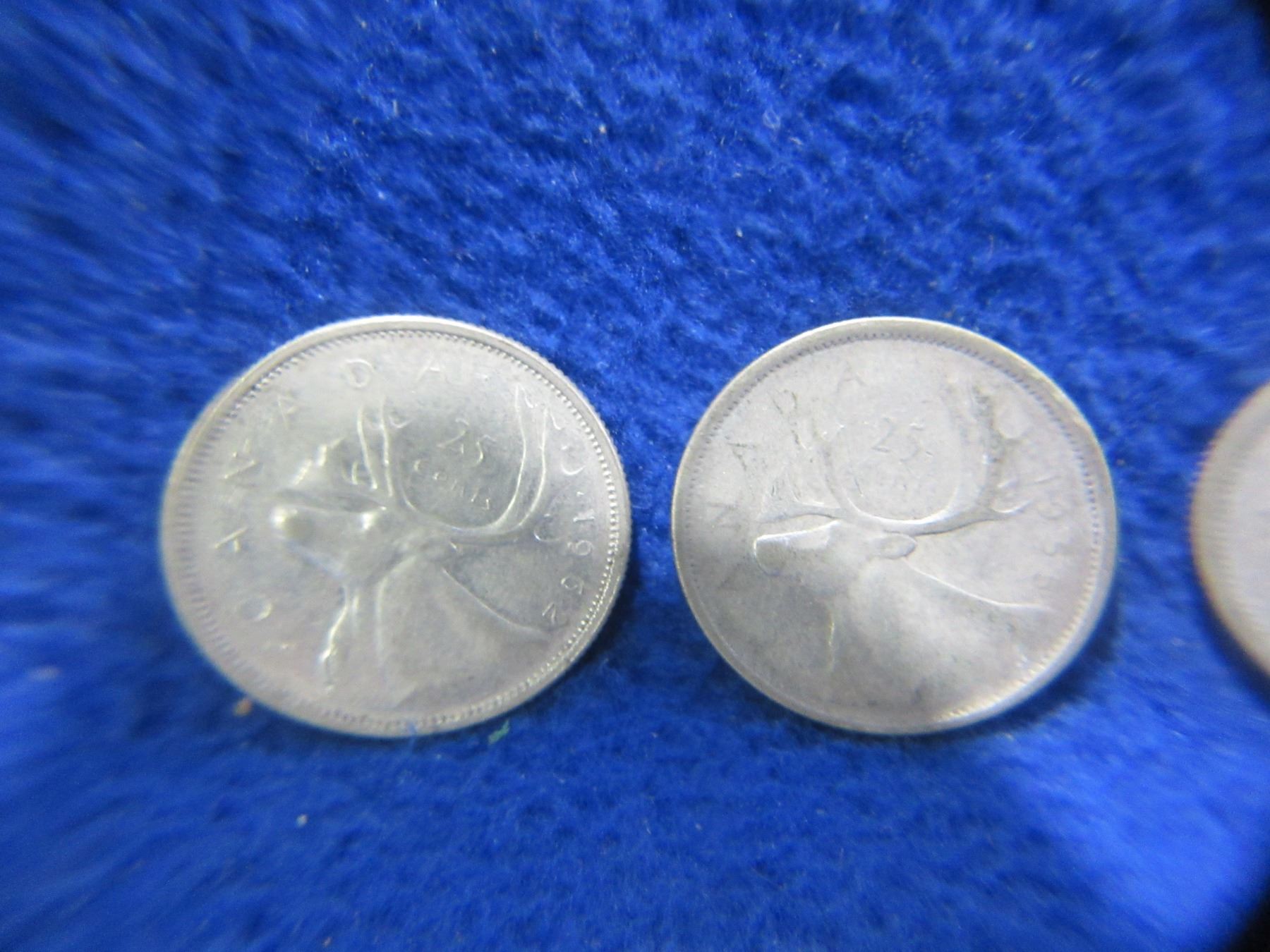 4 - Canadian 25 Cent Pieces - 1955, 1955, 1962, 1968 - 1955 and 1962 are .800 Silver, 1968 are .500 Silver