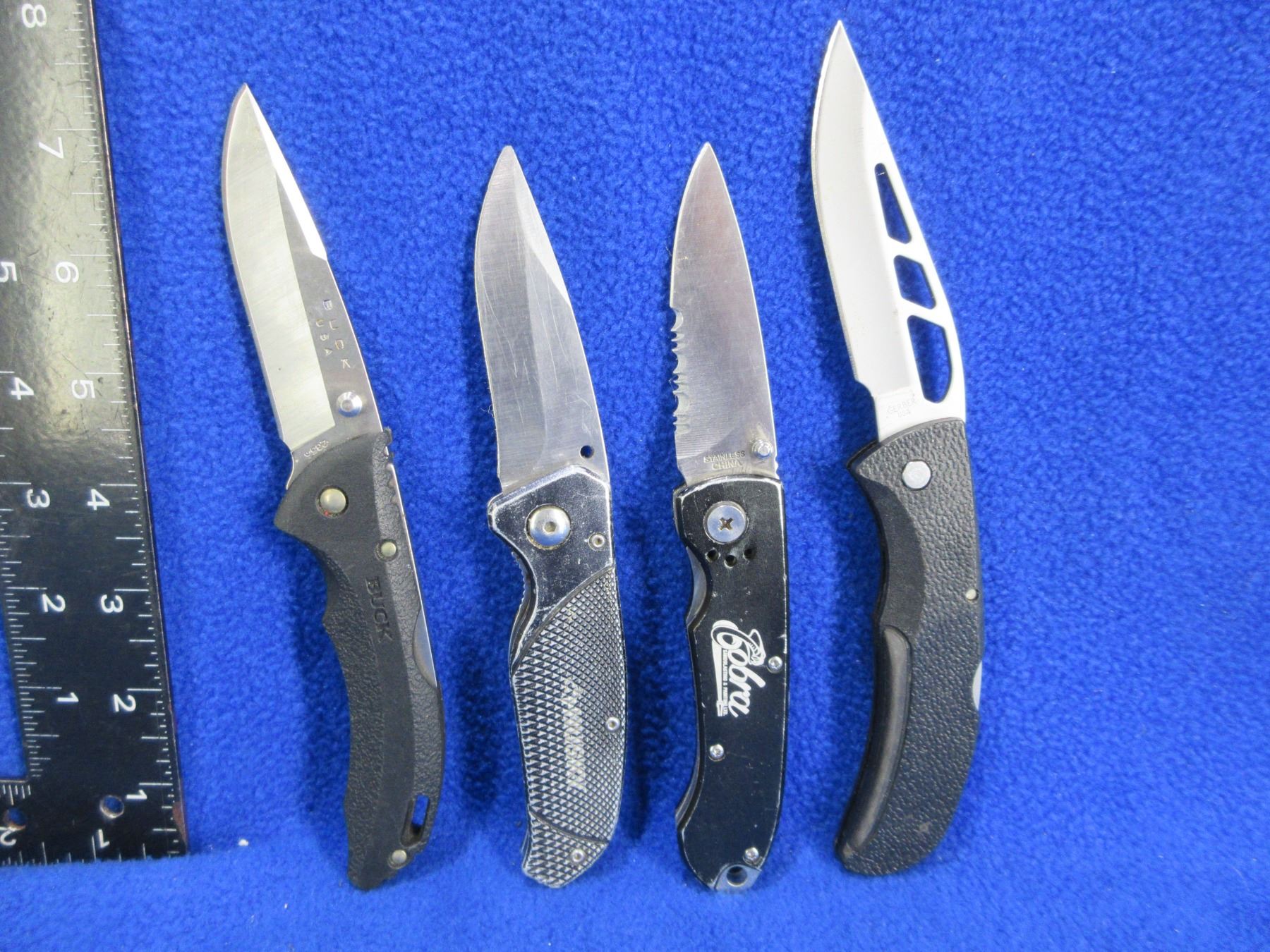4 Folding Lock Blade Pocket Knives - Buck, Gerber, China & Unknown