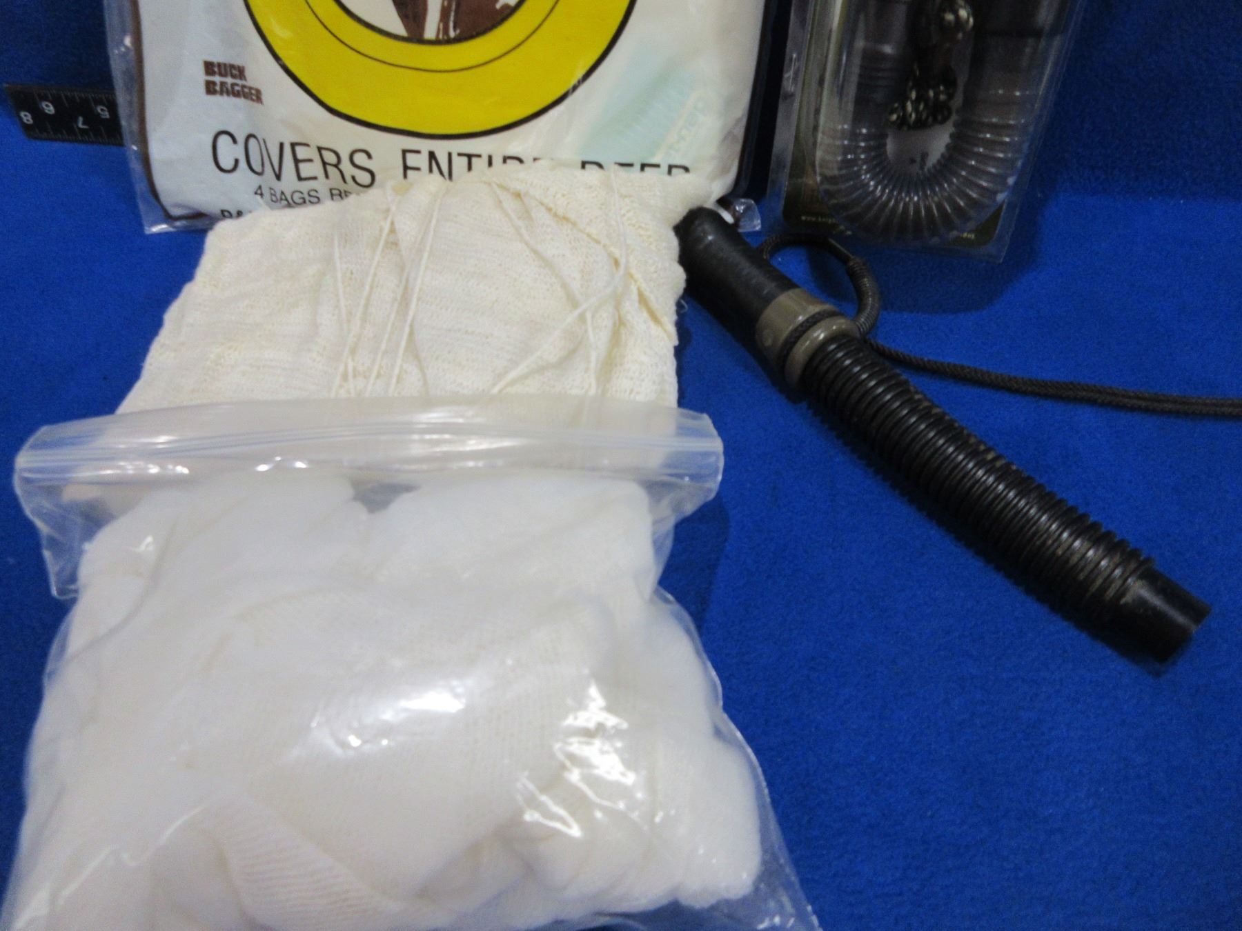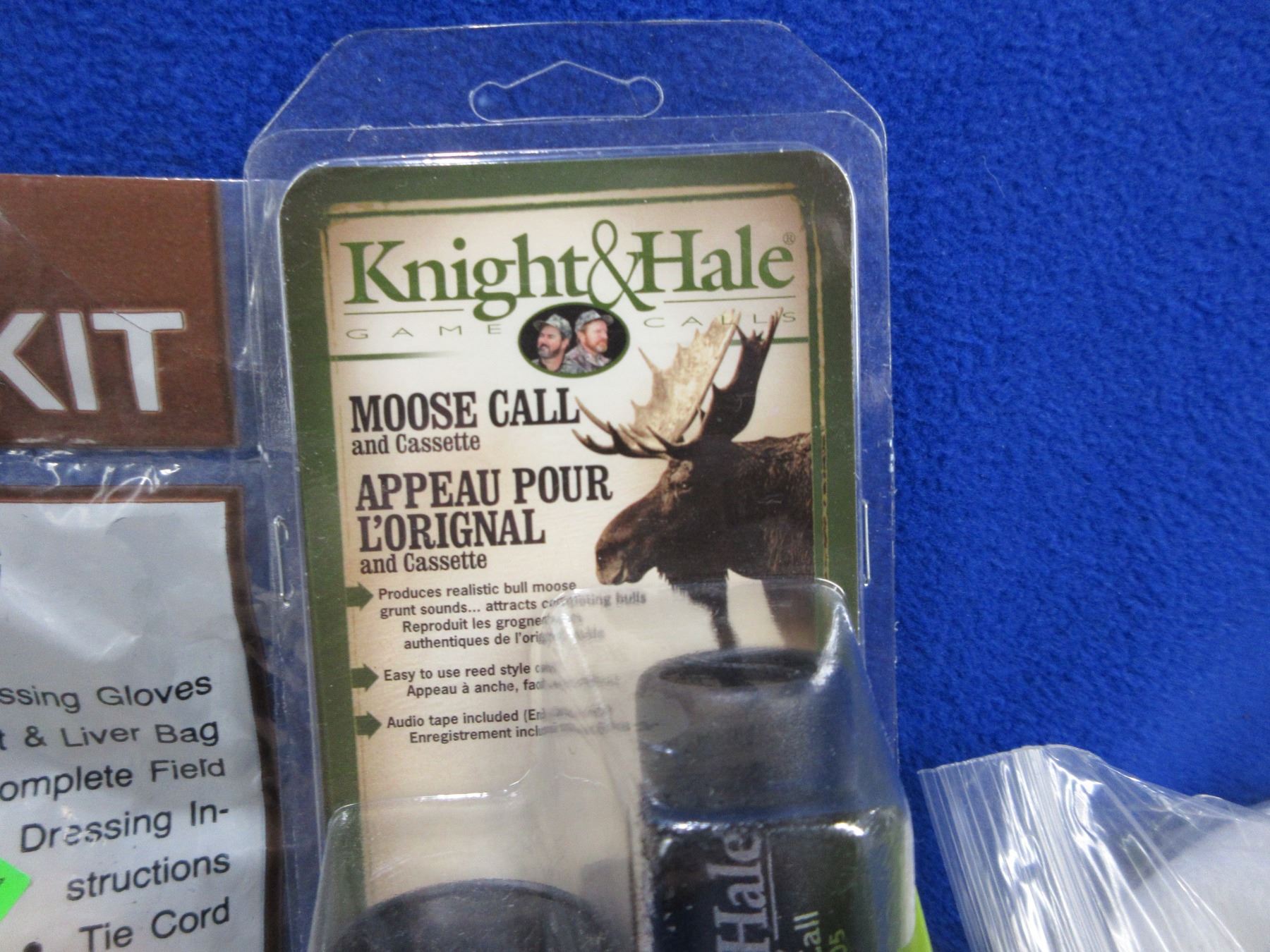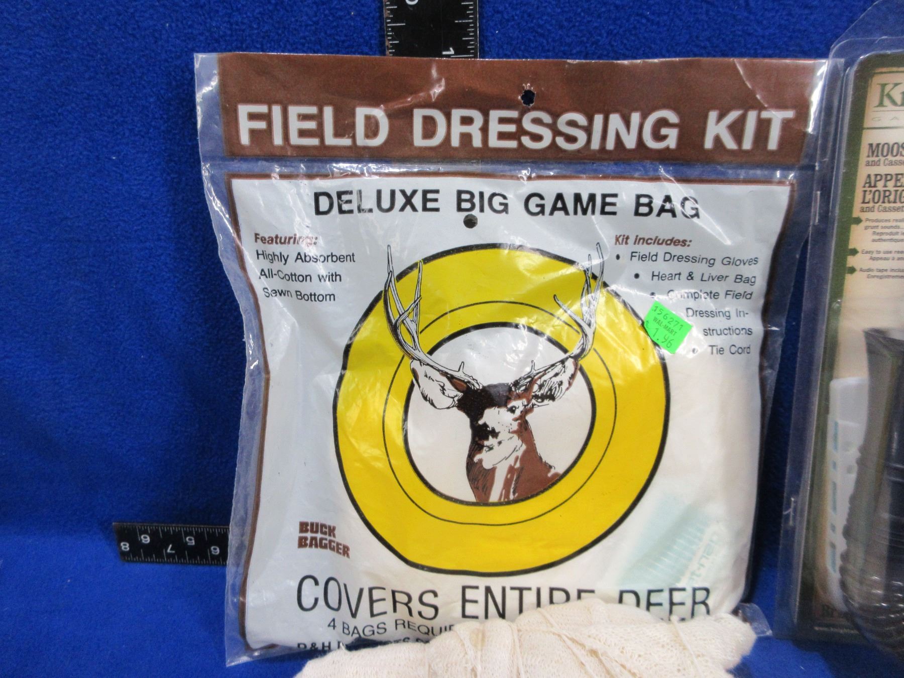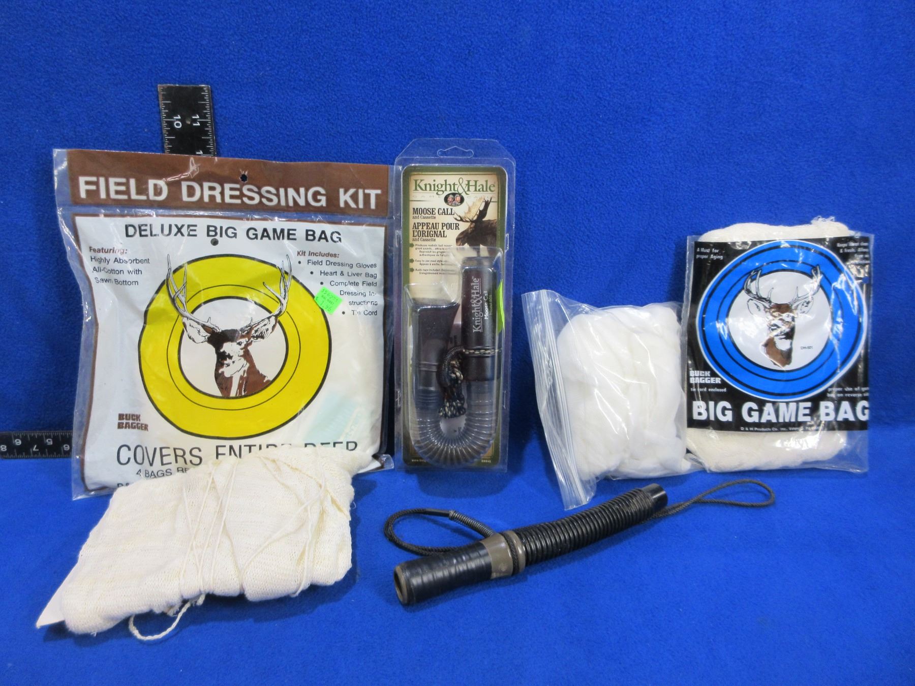 4 Game Bags and 2 Game Calls - 1 of the game calls is a New Knight & Hale moose call
