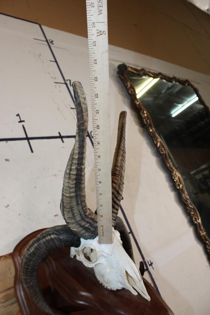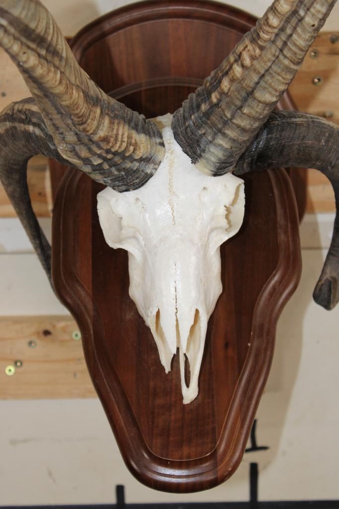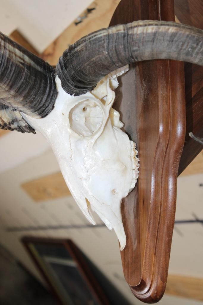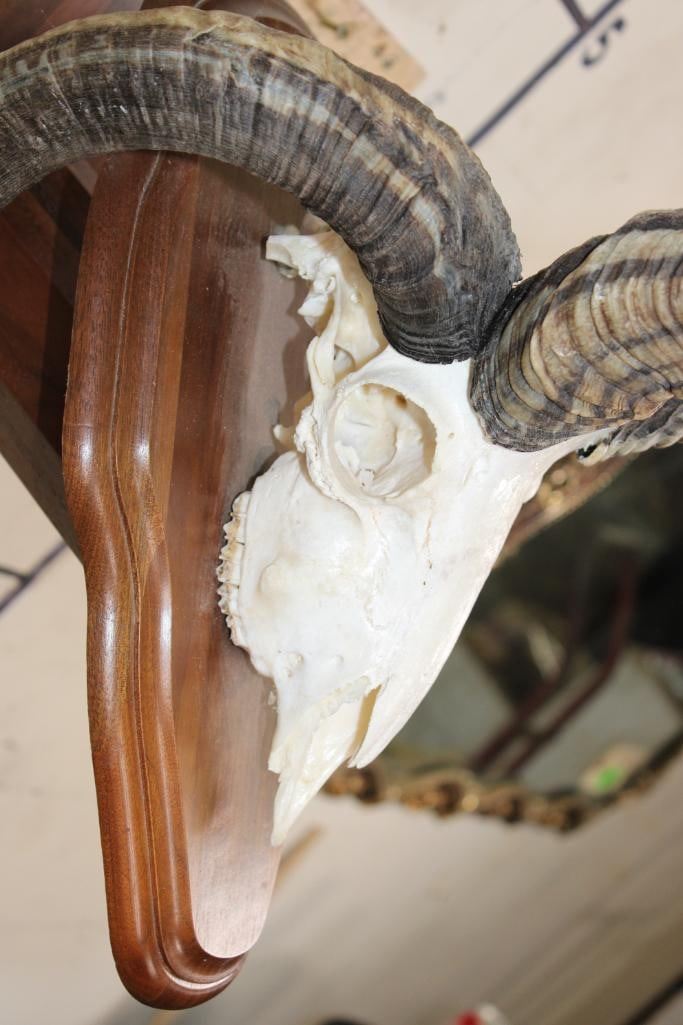 4 Horned JACOB SHEEP Skull on a Wood Wall Pedestal. There is some nose cone damage but it has All its Teeth. Jacob sheep are known for their unique polycerate trait, meaning they can have multiple horns, including four horns. This is due to a genetic mutation affecting the HOXD1 gene, which plays a role in body plan development and horn growth. The mutation alters the HOXD1 gene, leading to the expansion of the area where horns can develop, resulting in the growth of supernumerary horns. TAXIDERMY
