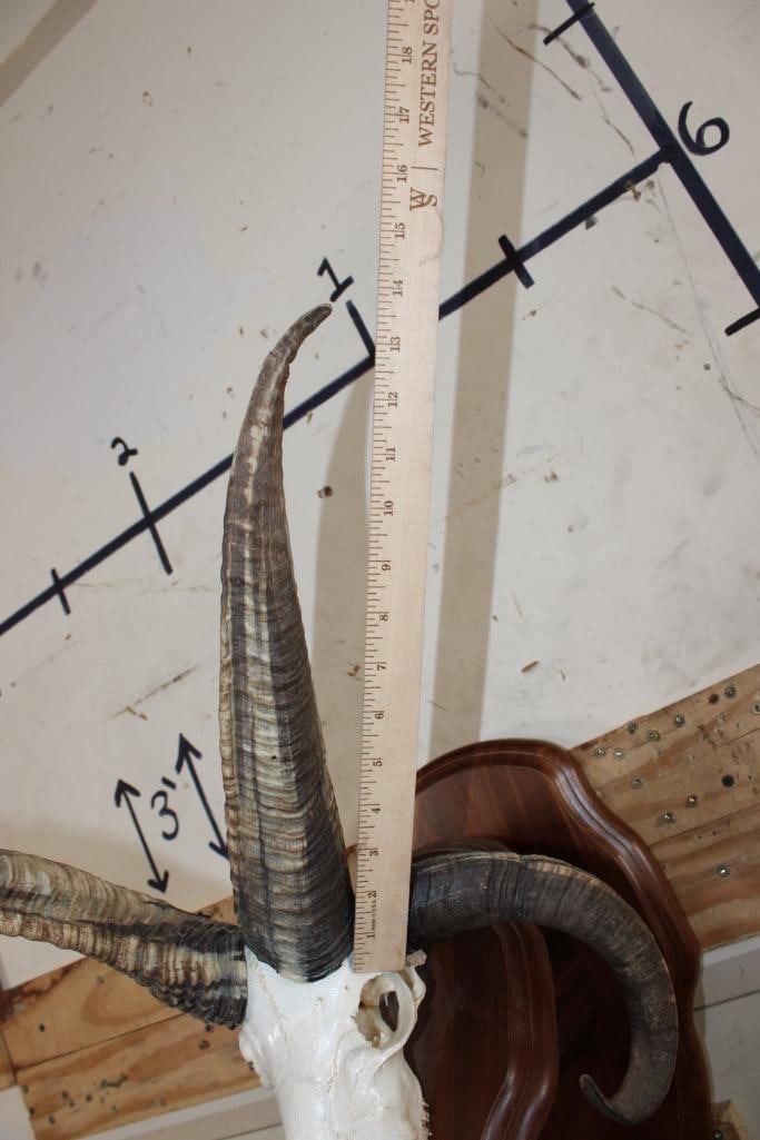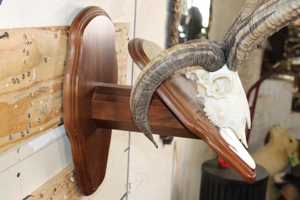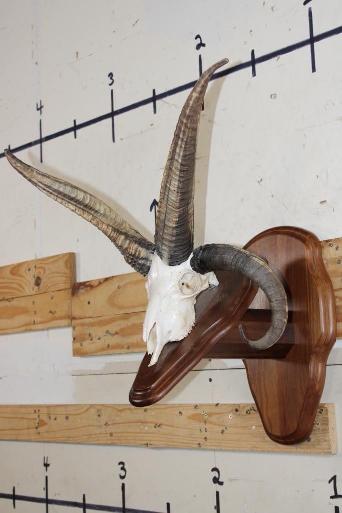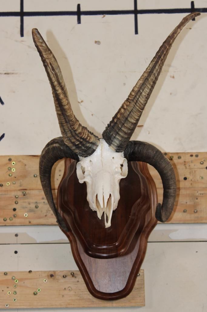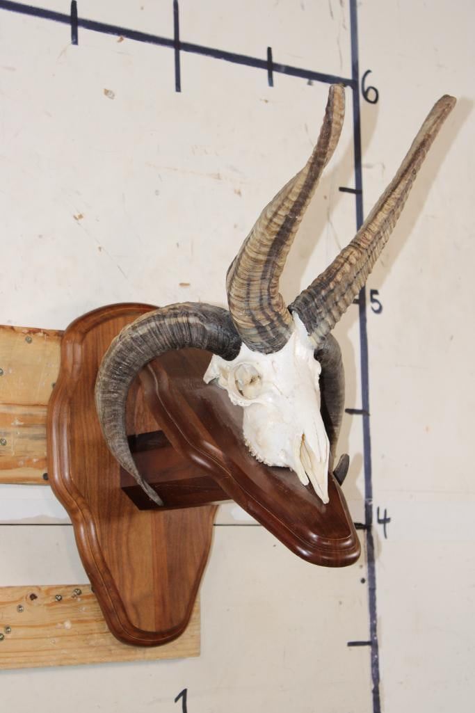 4 Horned JACOB SHEEP Skull on a Wood Wall Pedestal. There is some nose cone damage but it has All its Teeth. Jacob sheep are known for their unique polycerate trait, meaning they can have multiple horns, including four horns. This is due to a genetic mutation affecting the HOXD1 gene, which plays a role in body plan development and horn growth. The mutation alters the HOXD1 gene, leading to the expansion of the area where horns can develop, resulting in the growth of supernumerary horns. TAXIDERMY