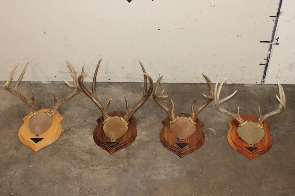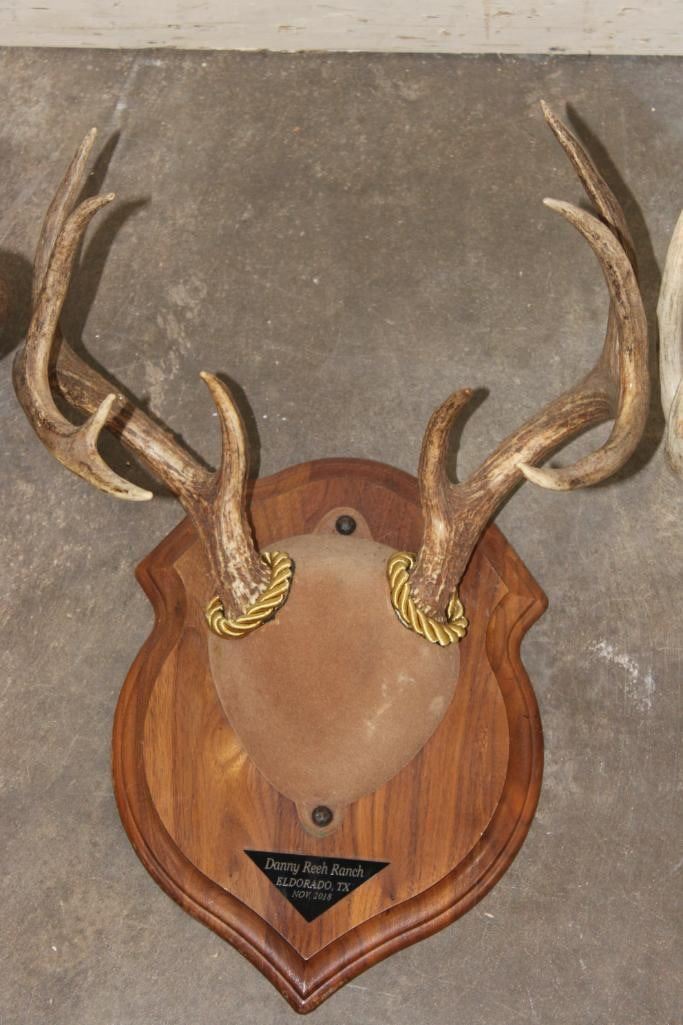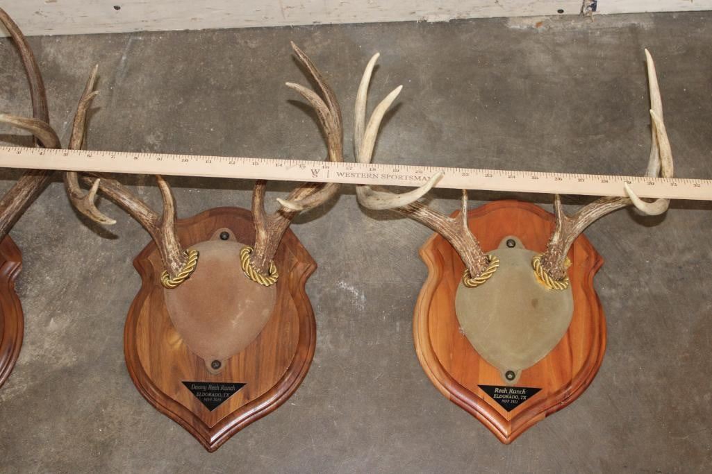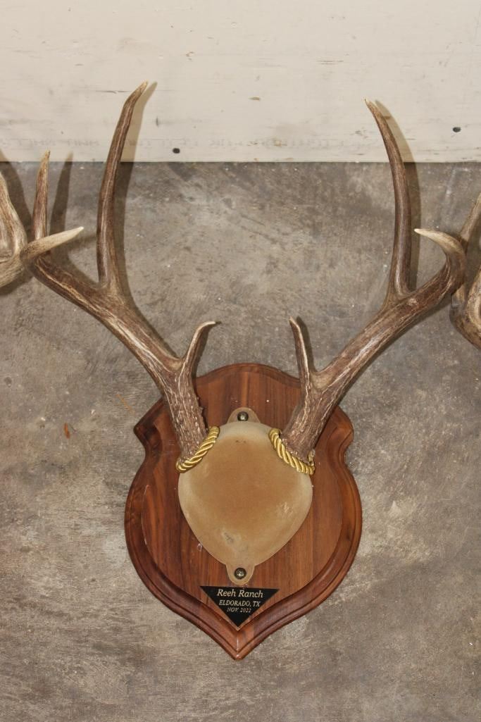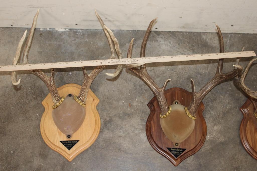 4 Mounted WHITETAIL DEER Antler Racks on Wooden Plaques. All were Taken at the Reeh Ranch in Eldorado, Texas. (ONE$) TAXIDERMY