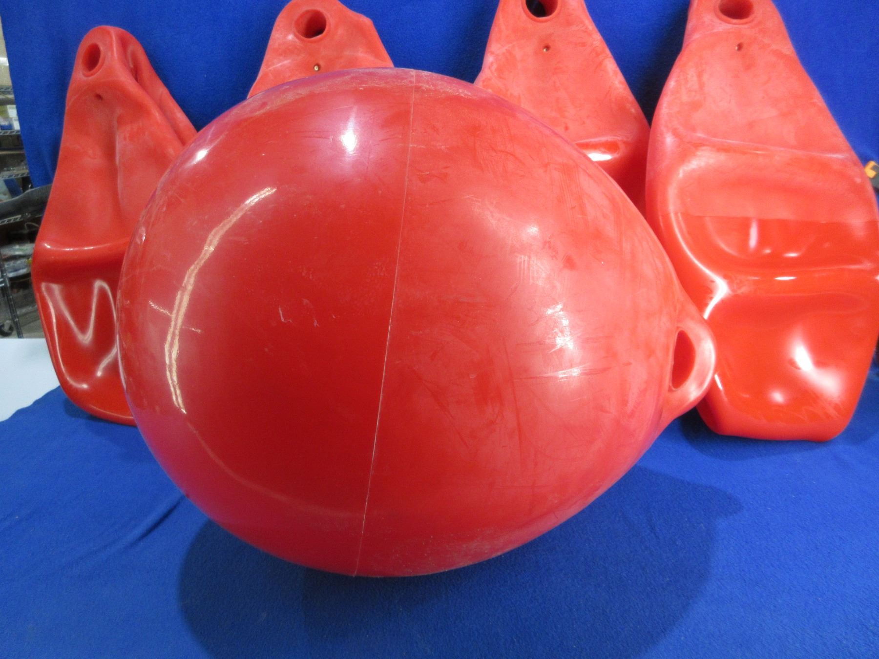 4 Red Boat Anchor Buoys/ Dock Bumpers - Approx. 20" x 15" - Not Inflated - Inflated buoy was for pictures only.