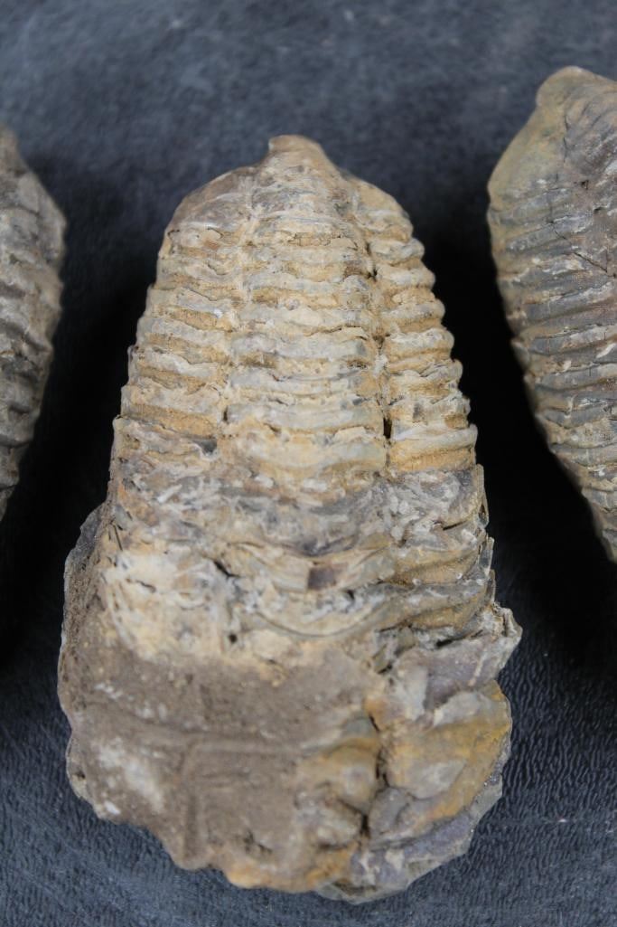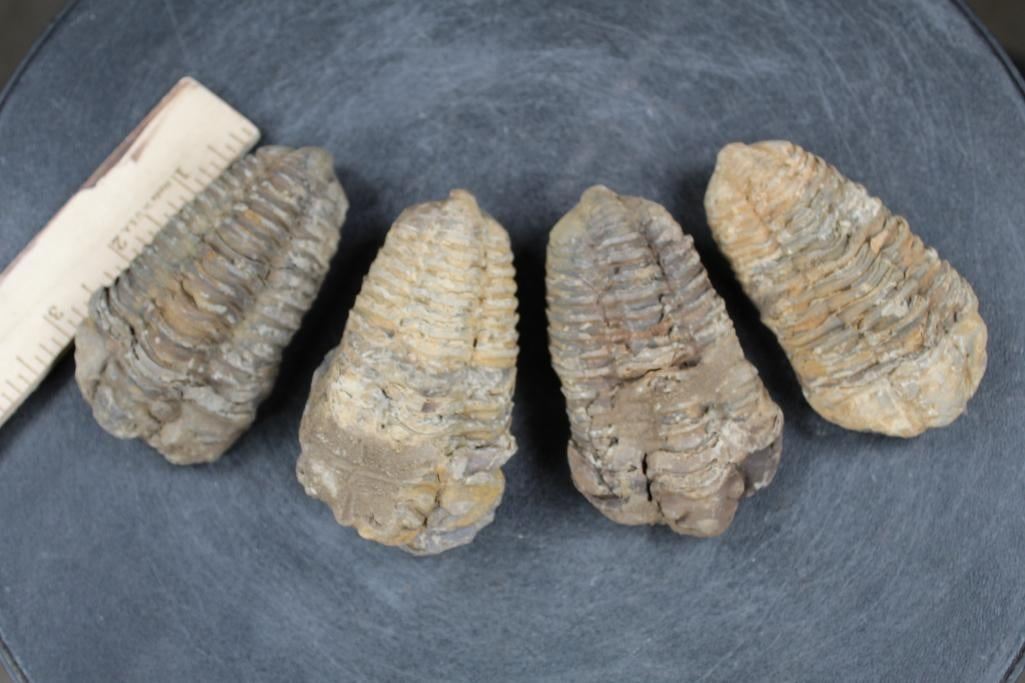 4 Trilobite "Diacalymene" FOSSILS from the Morocco Devonian Era. These are between 380-410 Million Years Old. Dimension are between 3.5"-4" Long x 2"-2.25" Wide. ROCKS FOSSILS MINERALS