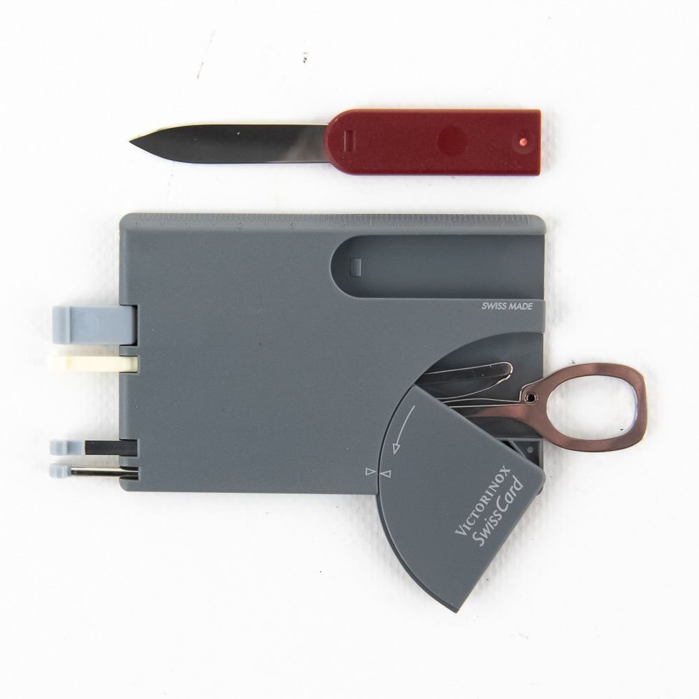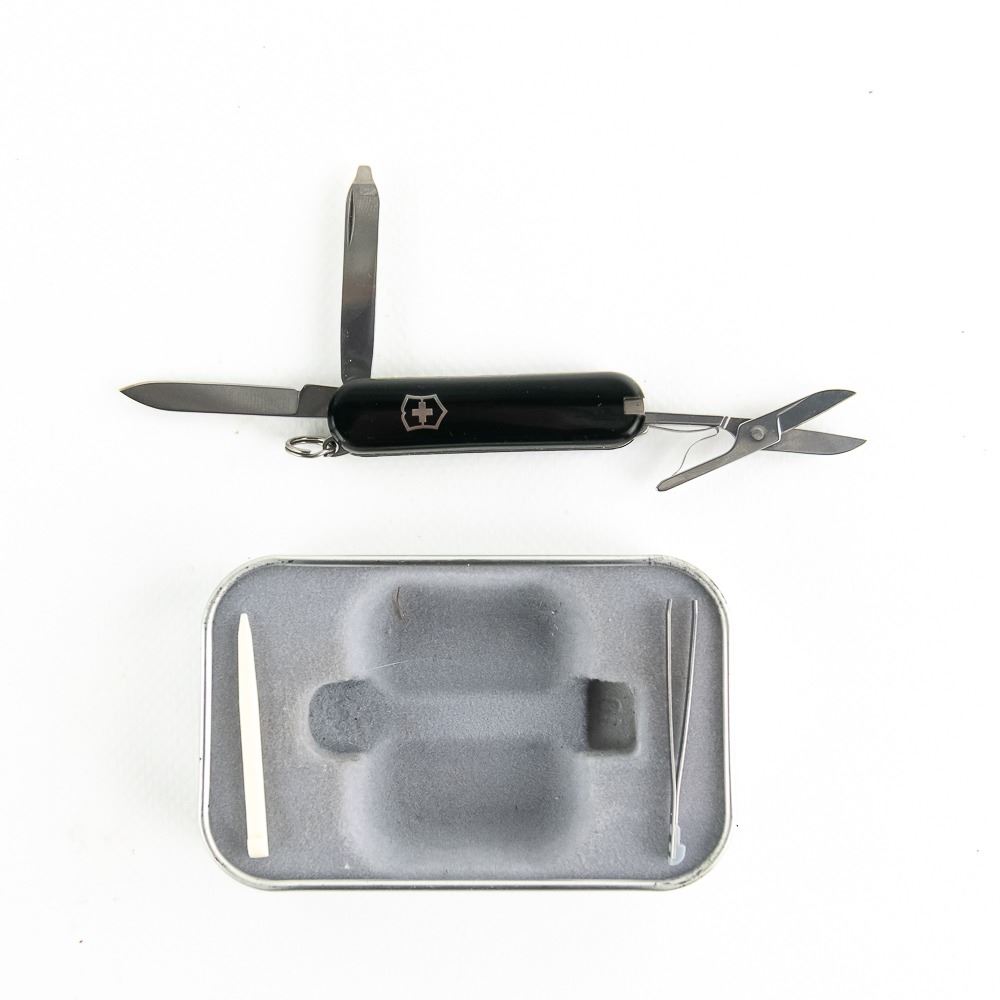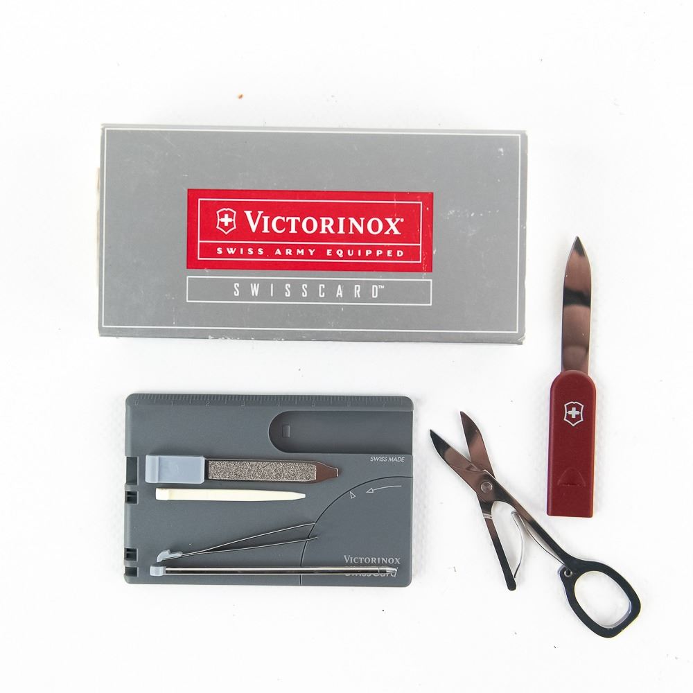 4 Brand new in box Victorinox Brand Swiss Army Knives. 3 different models. 2 Swiss Card, 1 Black Classic, 1 Tinker, and 1 Soldier with aluminum handles. All are Brand new in box knives with only storage wear. Excellent reseller lot. 2-3.5" closed length. See Photos.