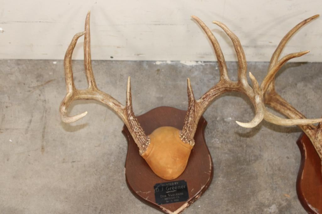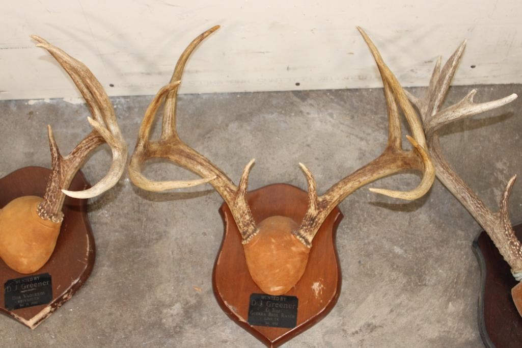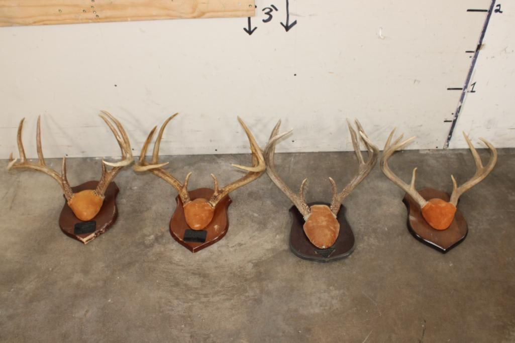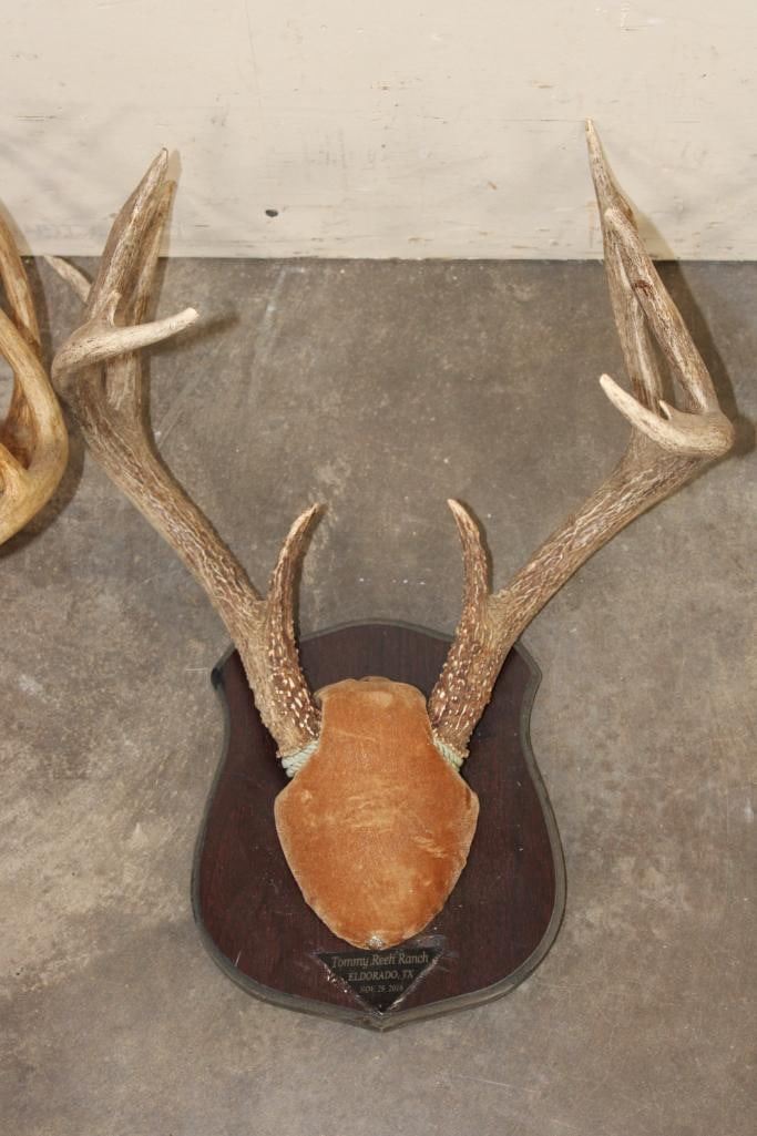 4 Respectable WHITETAIL DEER Antler Racks on Wooden Plaques. They were Taken Dec. 14, 2002 at Ranch Vaqueros in Refugio, TX, El Tule Guerra Bros Ranch Linn, TX, and Tommy Reeh Ranch Eldorado. (ONE$) TAXIDERMY