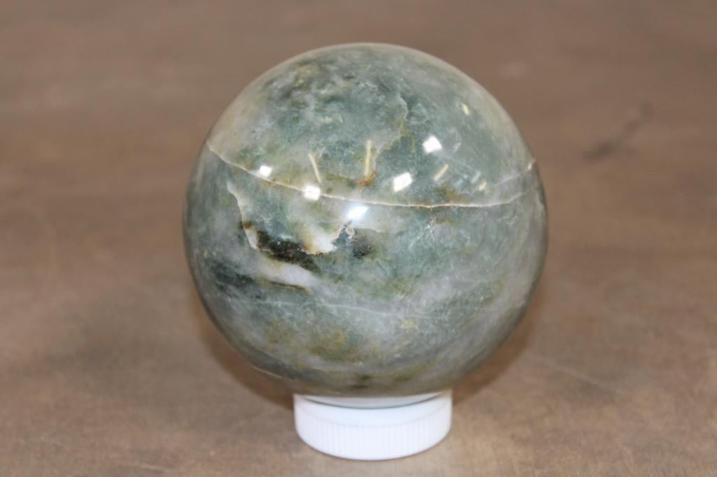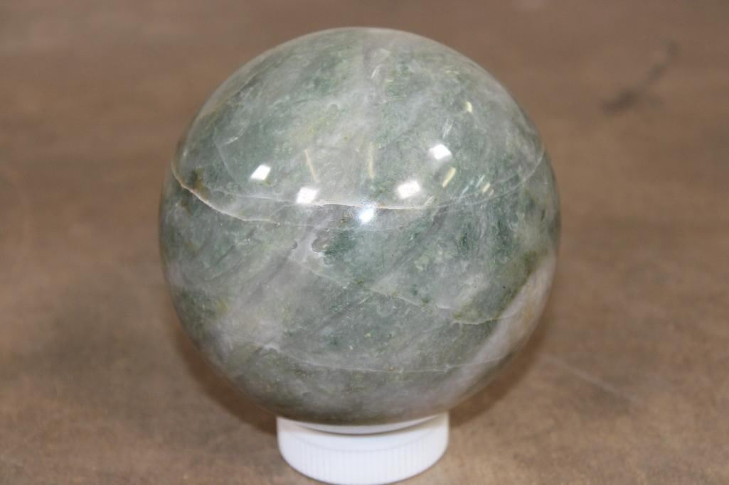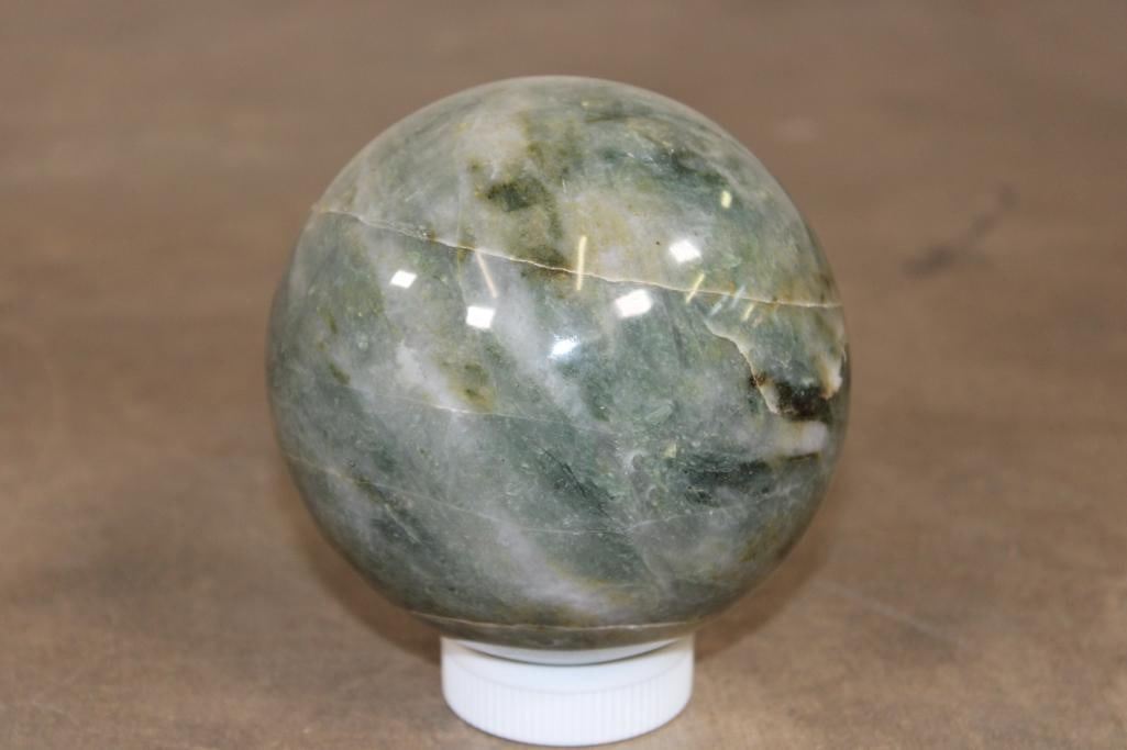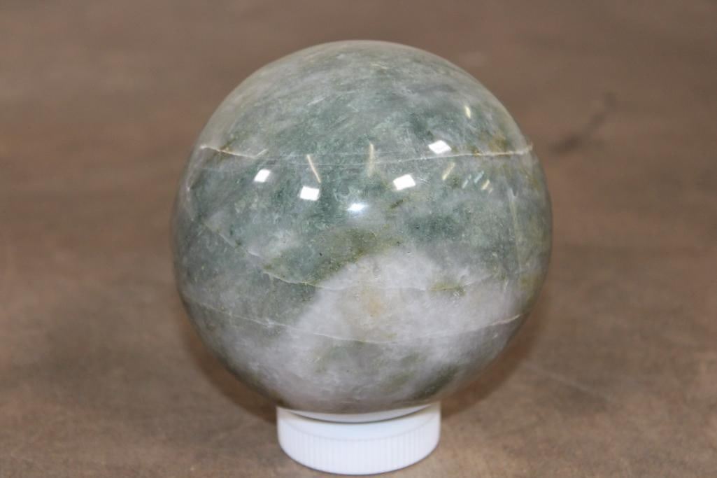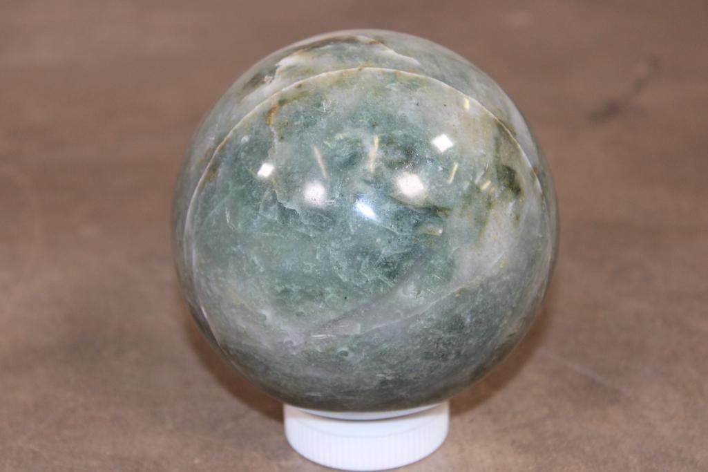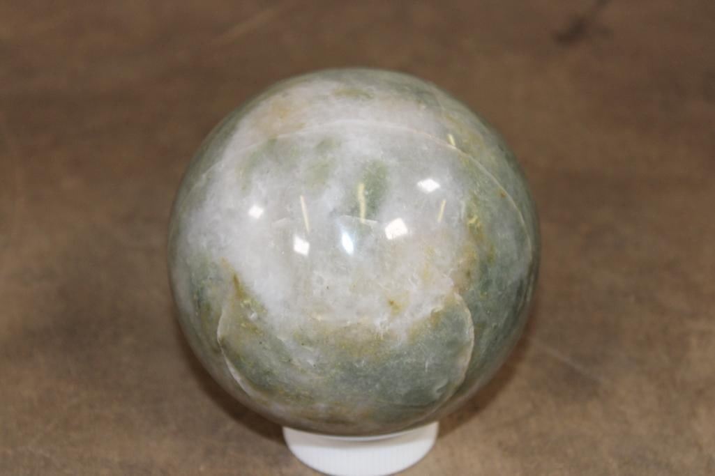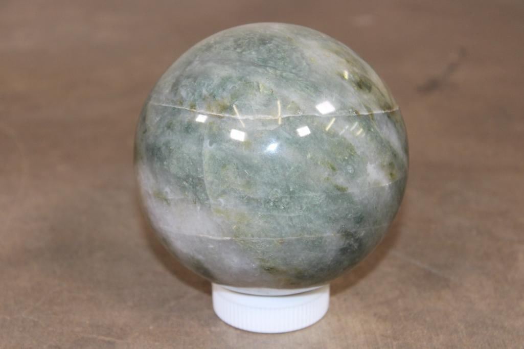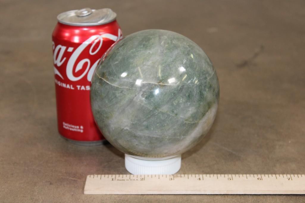 Formed and Polished Green AVENTURINE Mineral Sphere. The Total Weight is 4 lbs 10 oz and it has a 4 7/16" Diameter. You can add this to your collection for beautiful home or office decor. It can be used for meditation, Green Aventurine is said to eliminate negative energy and spread positive vibes all around. ROCKS FOSSILS MINERALS CRYSTALS