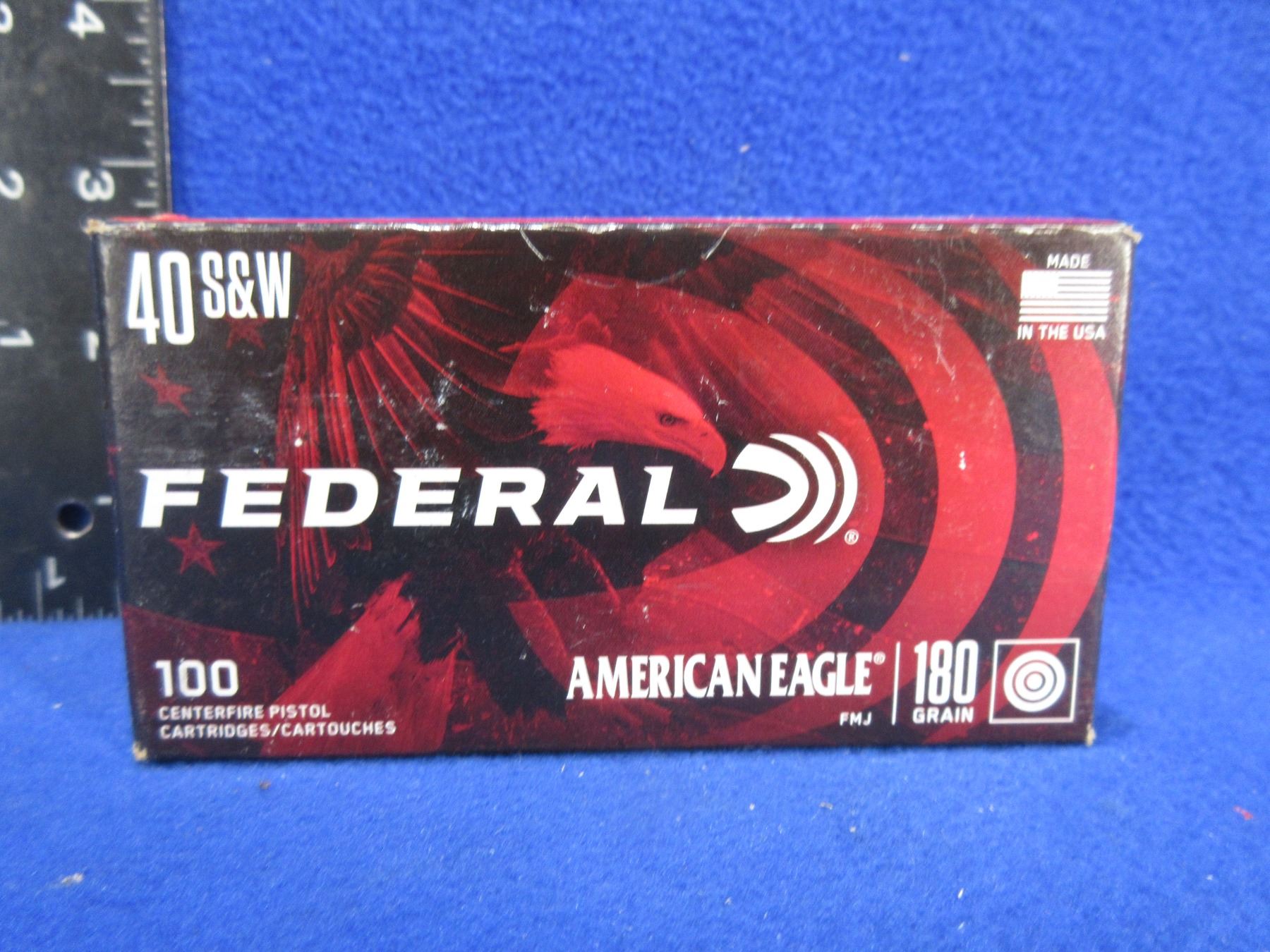 40 S&W 180gr FMJ American Eagle Federal Cartridges - Sealed Box of 100 - Must Ship Purolator