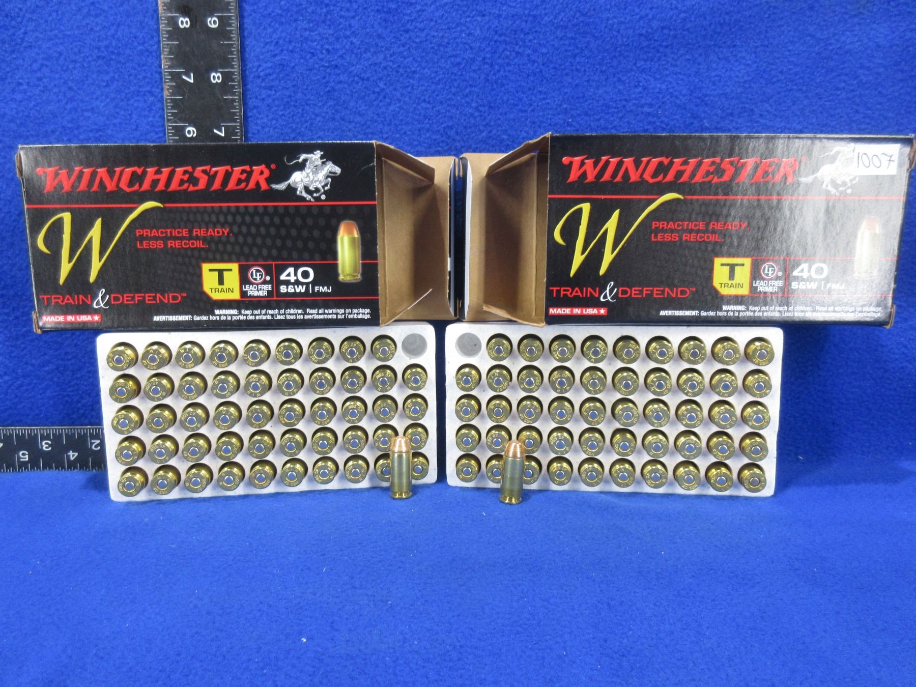 40 S&W 180gr FMJ Winchester Train & Defend Cartridges - 2 Boxes of 50 - Must Ship Purolator