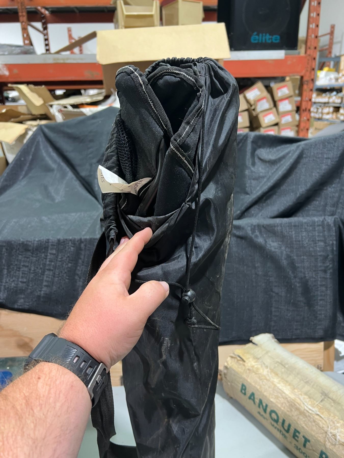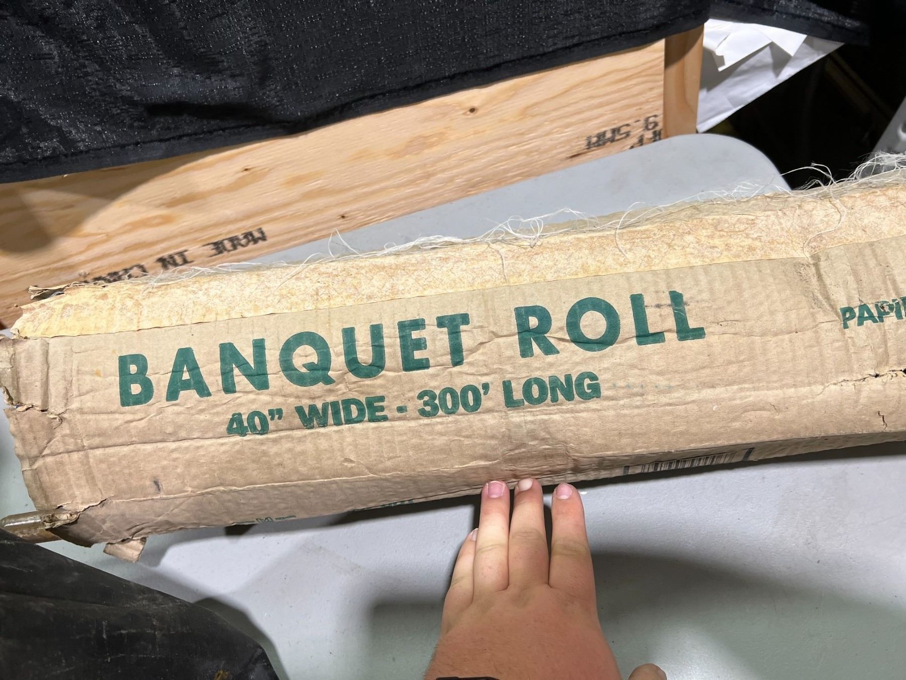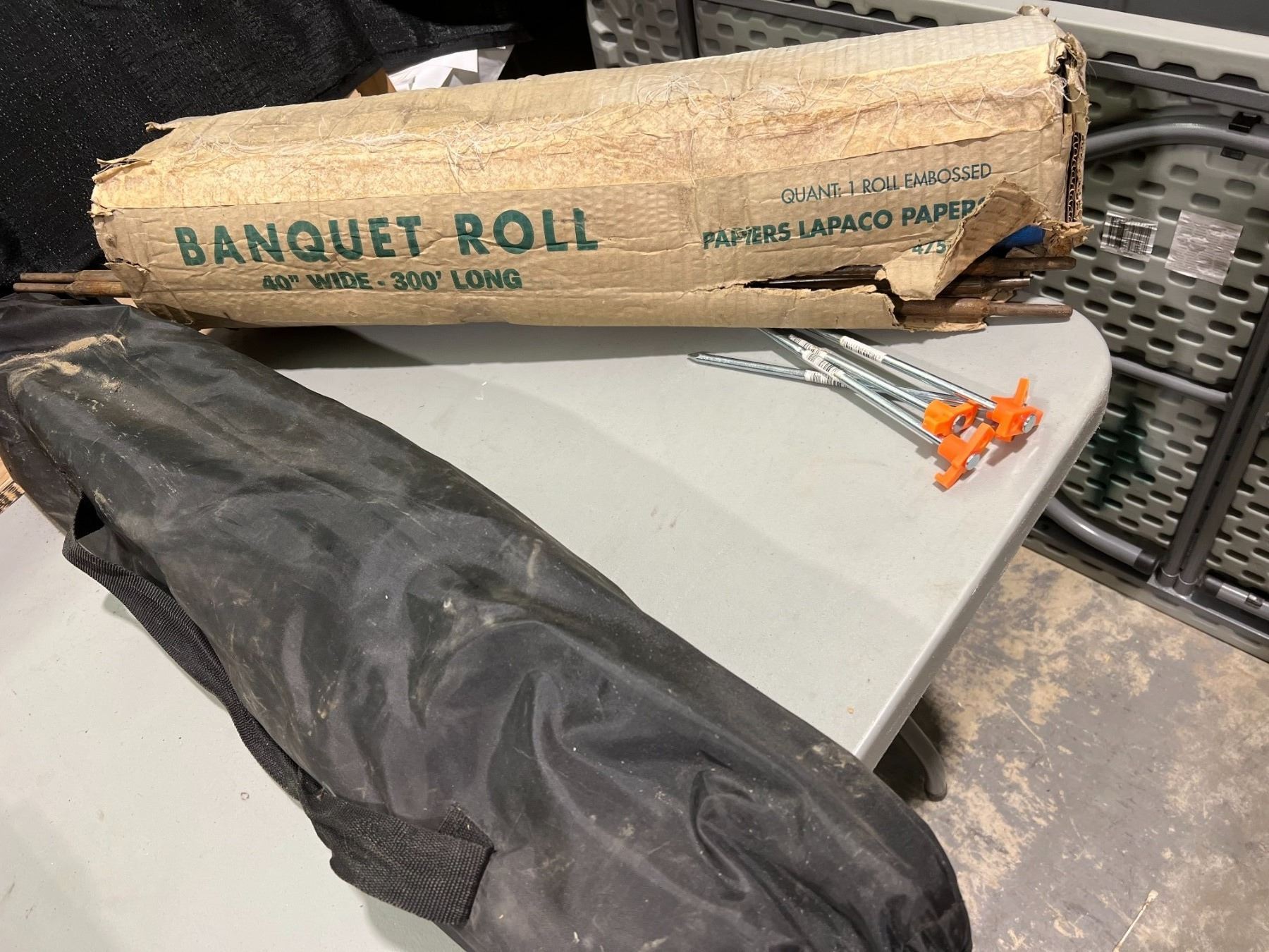 40"W X 300' LONG TARP WITH POLES AND FOUR TENT PEGS AND CAMPING CHAIR