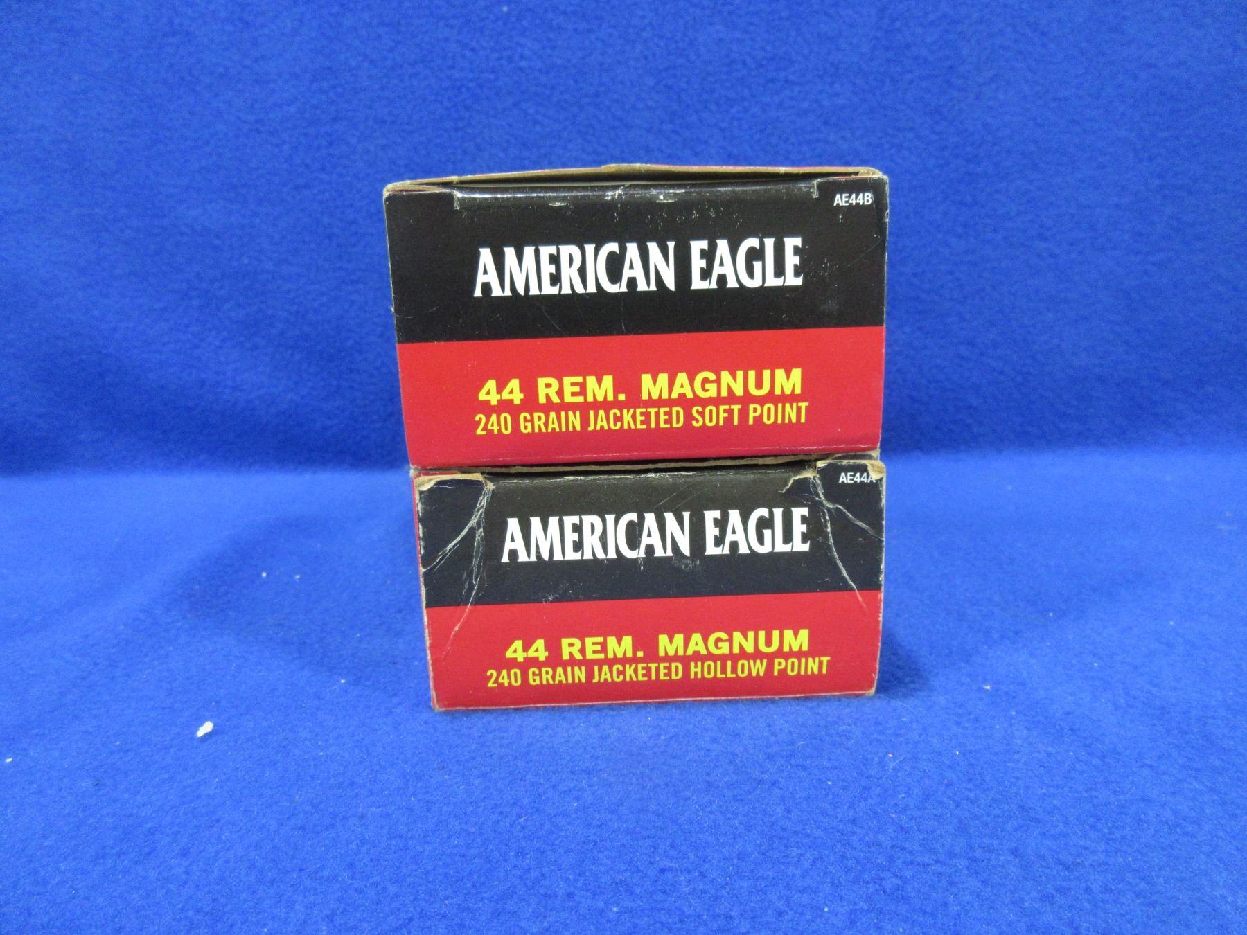 44 Rem. Mag 240gr Federal American Eagle Cartridges - Box of 50 (JSP), Box of 22 (JHP) - Must Ship Purolator