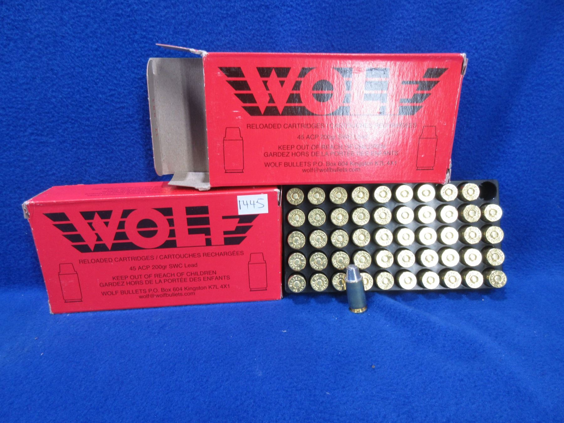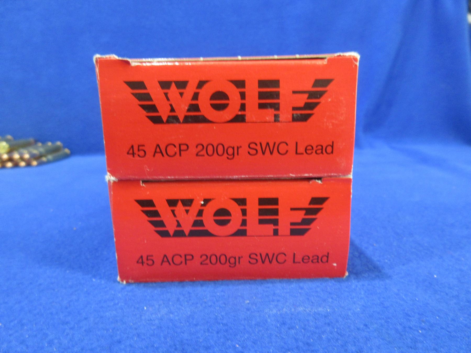 45 ACP 200gr SWC Lead Factory Reloads by Wolf - 2 Boxes of 50 - Must Ship Purolator