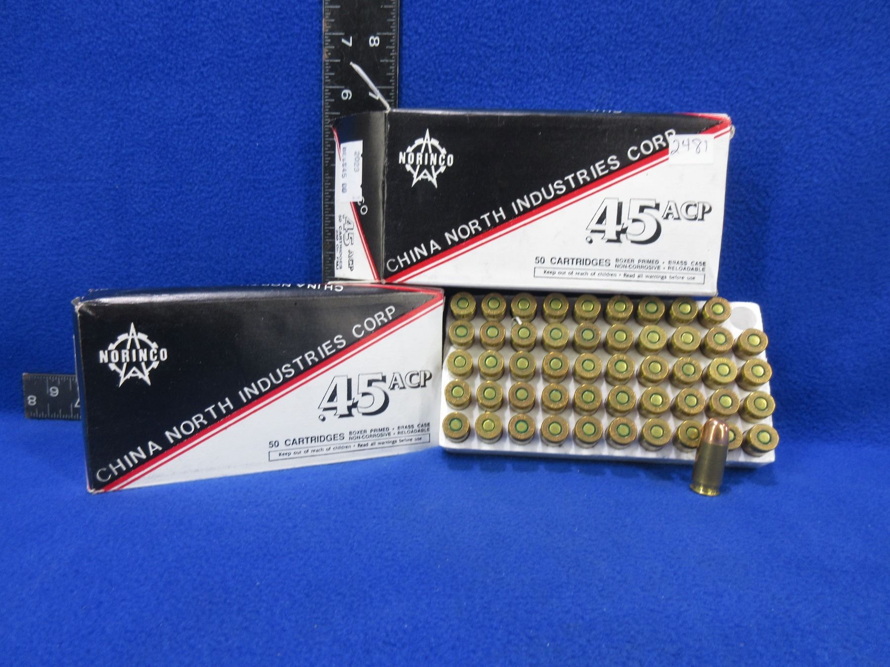 45 ACP 230gr FMJ Norinco Cartridges - 2 Boxes of 50 - Must Ship Purolator