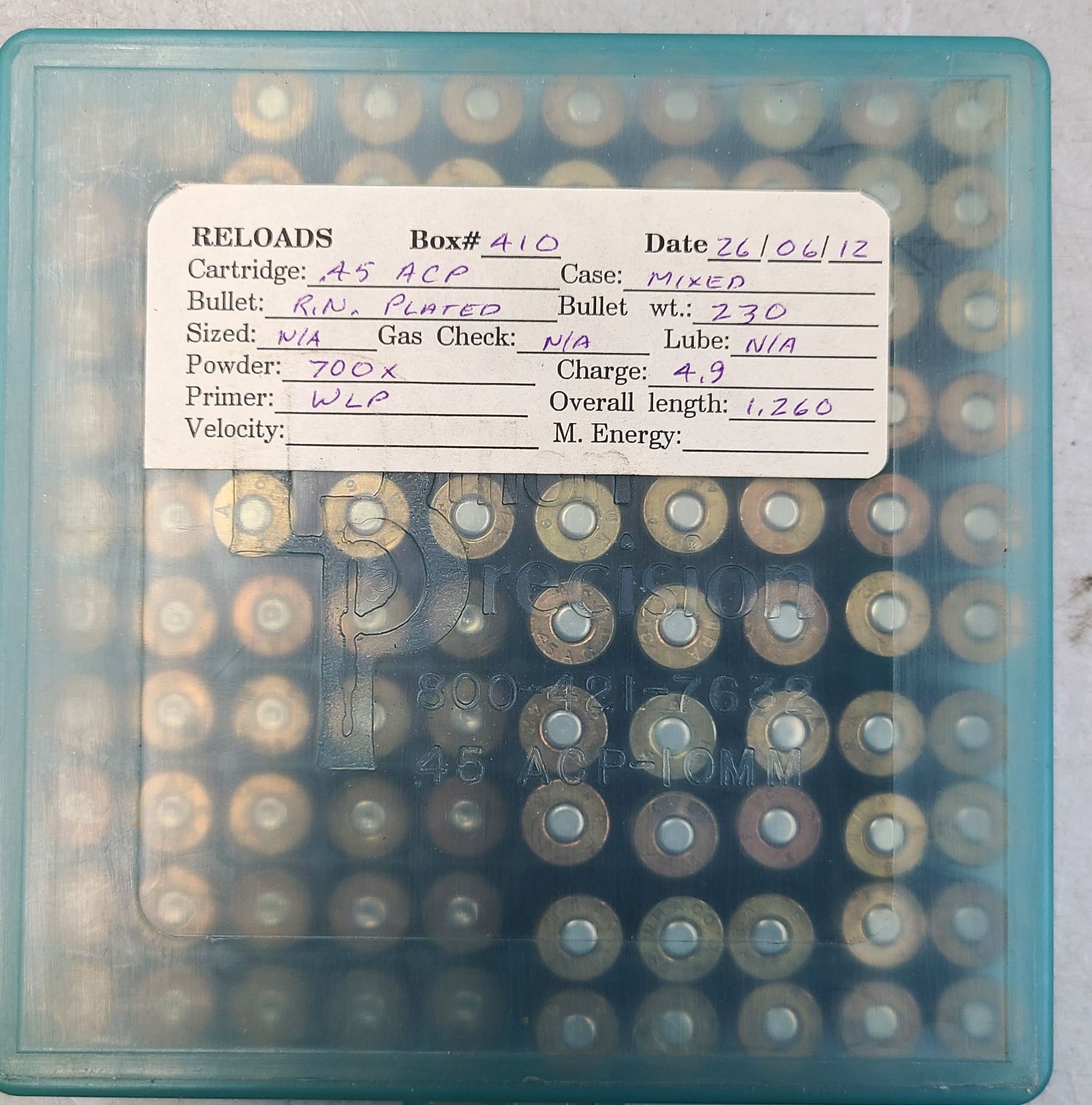 45 ACP Round Nose Plated 230 gr RELOAD - 65 rds + 35 Brass