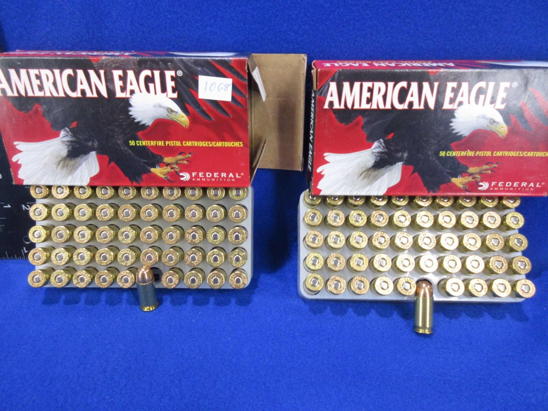 45 Auto 230gr FMJ Federal American Eagle Cartridges - 2 boxes of 50