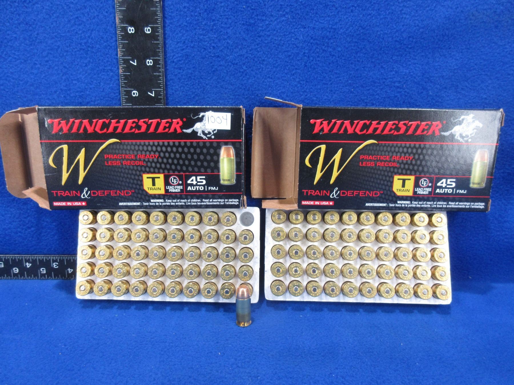 45 Auto 230gr FMJ Winchester Train & Defend Cartridges - 2 Boxes of 50 - Must Ship Purolator