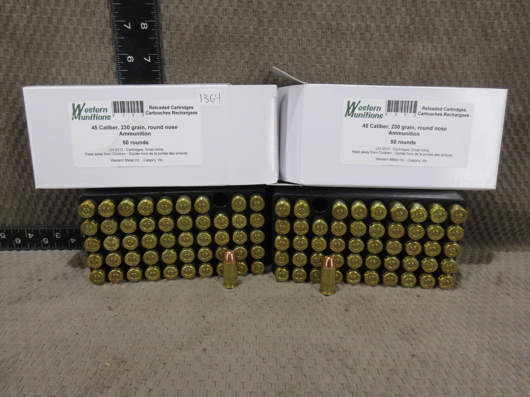 45 Cal. 230gr RN Reloads By Western Munitions - 2 Boxes of 50