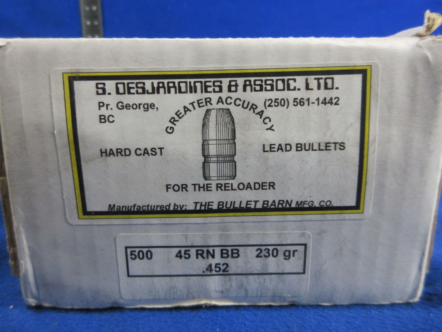 45 Cal. .452" 230gr RN BB Lead Bullet Barn Bullets - Box of 500